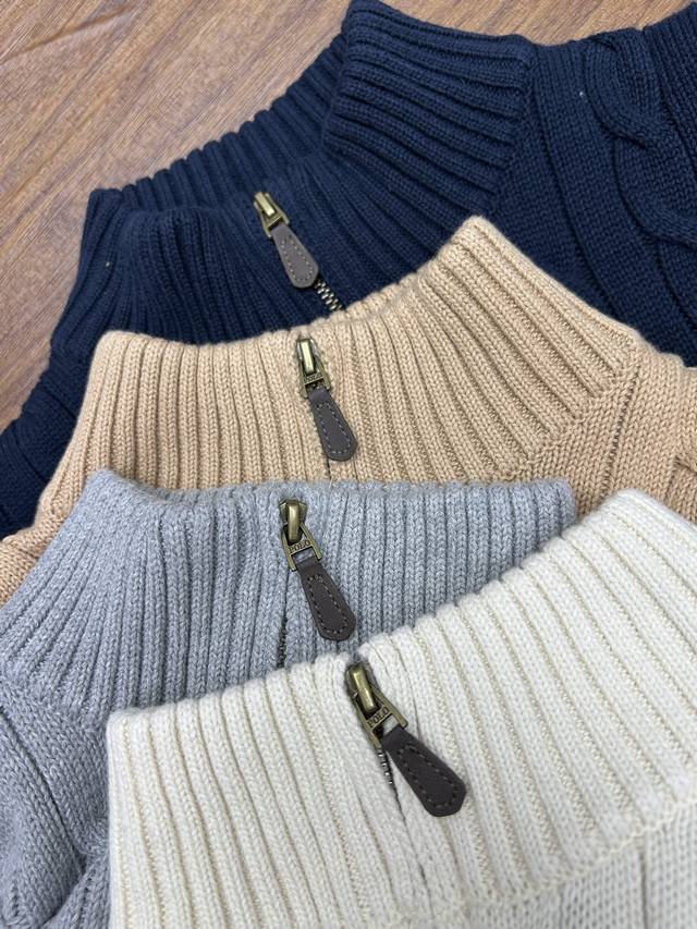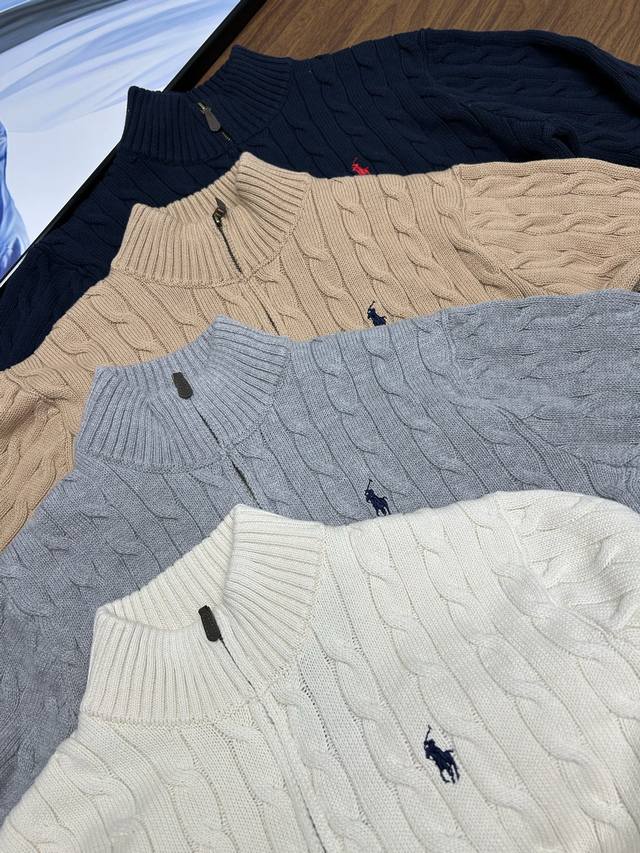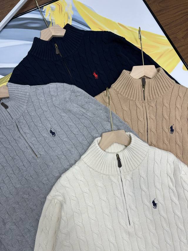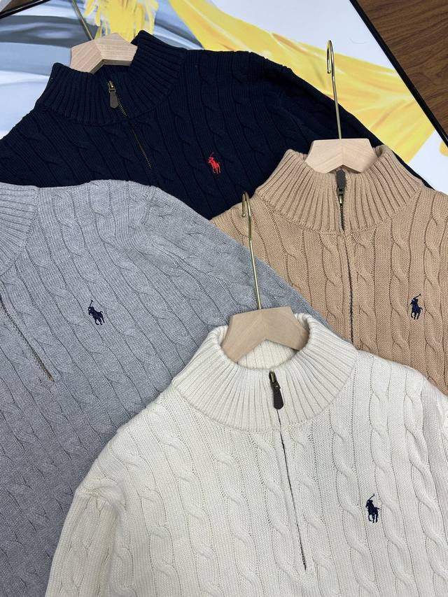 Ralph Lauren half-zip knit sweater, unisex style! This Ralph Lauren half-zip solid color cable knit sweater features a retro preppy style and is incredibly comfortable. A must-have for spring, autumn, and winter, it's also great for layering in colder weather. A perfect everyday piece, flattering for all body types, and a must-have for autumn and winter outings. The fabric is soft, skin-friendly, and warm. The classic retro cable knit exudes American style and is incredibly versatile. Layer it over a base layer and add a coat; this outfit is perfect for winter in the south. Made with a new wool blend fabric, it's delicate, soft, and comfortable against the skin. Ralph Lauren Lauren classic basic versatile unisex knit pullover sweater. Mainly supplied to live streaming platforms and physical stores. Out of stock will be replenished immediately and will not be removed from the shelves. 1:1 replica of boutique quality. Scan the code to access the Gf website. Exclusive to the entire network for boutique quality details. Imported quality cotton yarn. High-end, cost-effective, quality speaks for itself. Original design faithfully reproduced. Largest size fits up to 190 lbs. Loose, comfortable, and pressure-free. Simple and easy to match. A must-have for everyone. A must-have for couples' wardrobes. Colors: Navy, Khaki, Apricot, Gray. Sizes: S-XL. Size Chart: S: Chest 108cm, Shoulder 44cm, Length 69cm; M: Chest 112cm, Shoulder 45cm, Length 71cm; L: Chest 116cm, Shoulder 4cm, Length 73cm; XL: Chest 120cm, Shoulder 47cm, Length 75cm. Size Recommendation: S for around 120 lbs; M for around 140 lbs; L for around 160 lbs; XL for around 180 lbs.