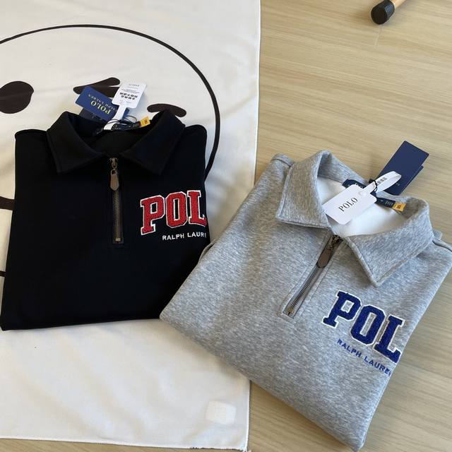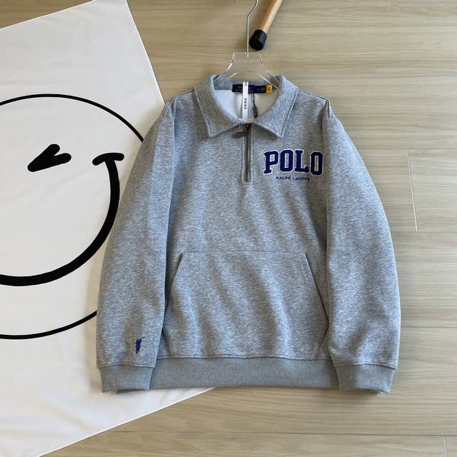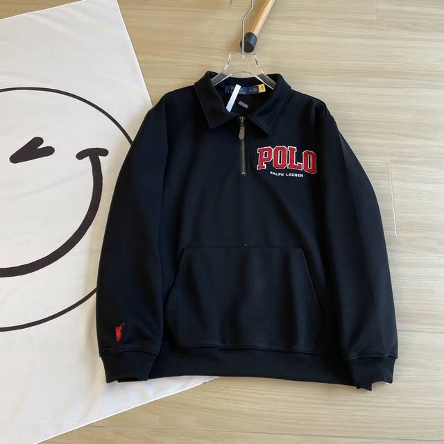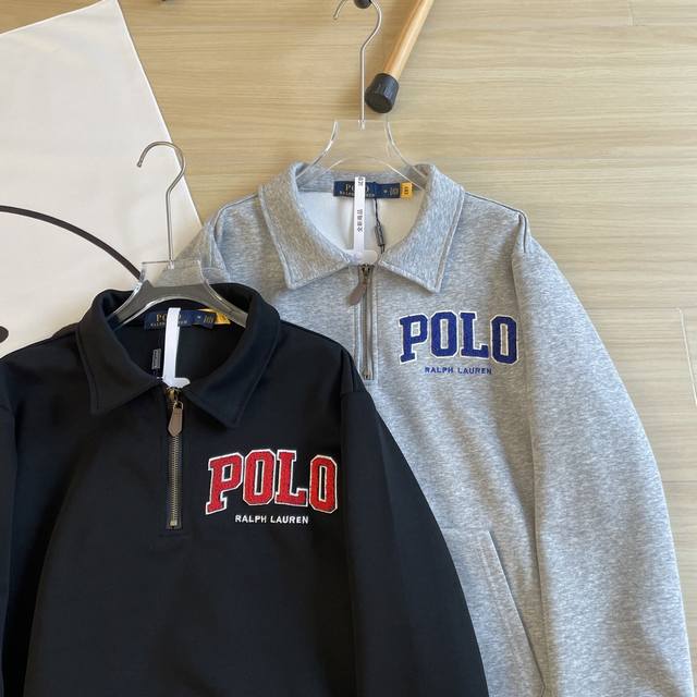 Spring Polo Jacket Ralph Lauren Half-Zip Lapel Loose Pure Cotton Unisex Two-Tone Warm Casual Sweatshirt