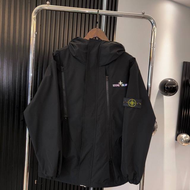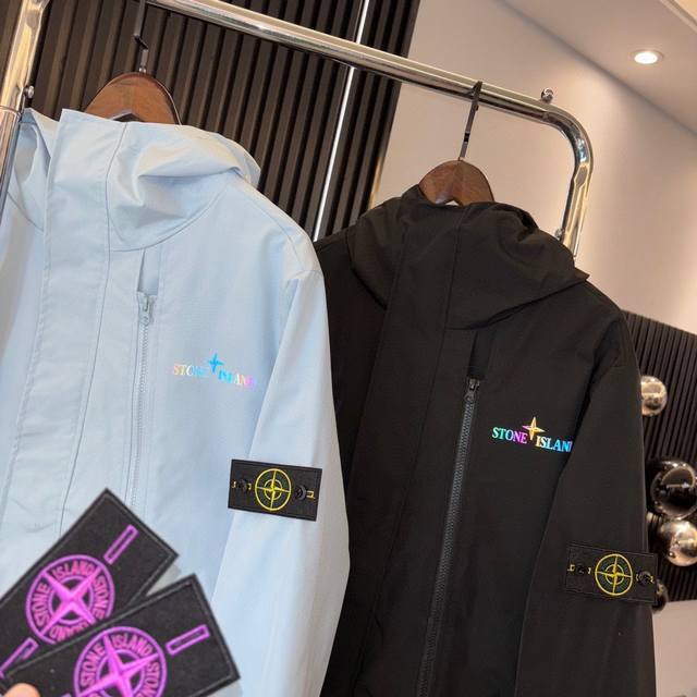 Stone Island Multi-Zip Hooded Jacket, unisex, two-tone sleeve badge, iridescent reflective logo. A super popular style on Instagram, Xiaohongshu, and Douyin. The loose fit is flattering and versatile, making it incredibly easy to wear. Its simple style is both cool and stylish, easily matching various outfits. Highly recommended! A must-have for trendsetters, unisex, and couples! Colors: Black, Light Blue. Sizes: M-3XL. Measurements: M 124 57 70 57; L 128 58 72 59; XL 132 59 74 61; 2XL 136 60 76 63; 3XL 140 61 78 65.