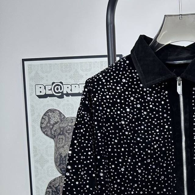 Goodbraand Silver Starry Night Corduroy Baseball Jacket Zipper Jacket