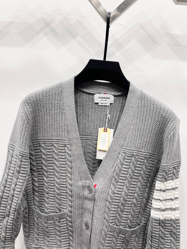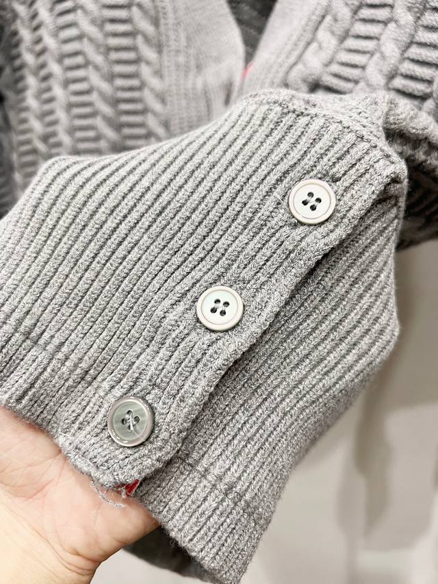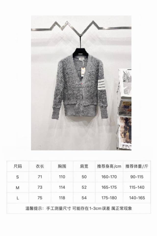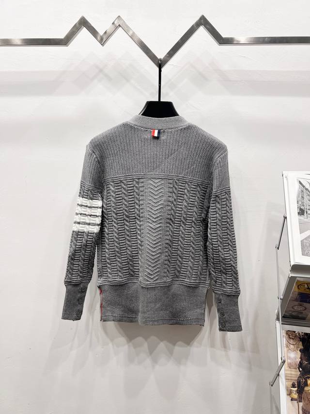 Thom Browne TB Classic Drop-Shoulder Knit Cardigan. Available simultaneously at official stores and online. Authentic order from a US trading company. Knitted on a 16-gauge Japanese Toyota flat knitting machine. Four-hole knit cuffs. Standard weight 390g. Custom-supplied 36-count modal core-spun yarn from imported Turkish goat hair. The 3-ply yarn construction provides a crisp texture and excellent warmth. Very stylish! This simple yet classic style will never go out of fashion and pairs effortlessly with any item for a chic look!