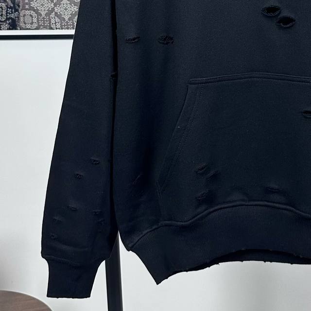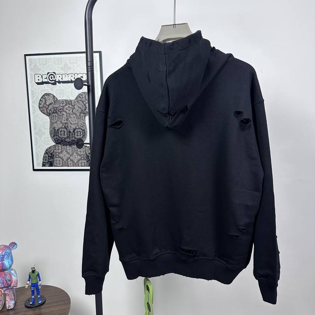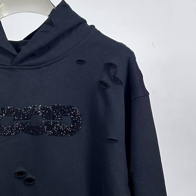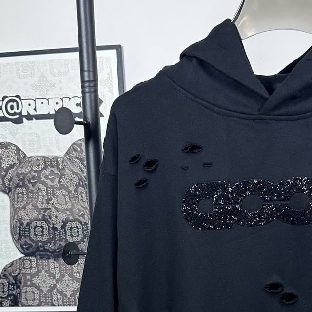 Goodbrand Rhinestone Distressed Long-Sleeve Hooded Sweatshirt