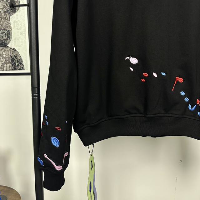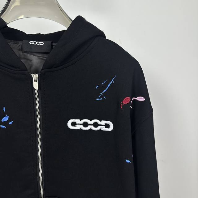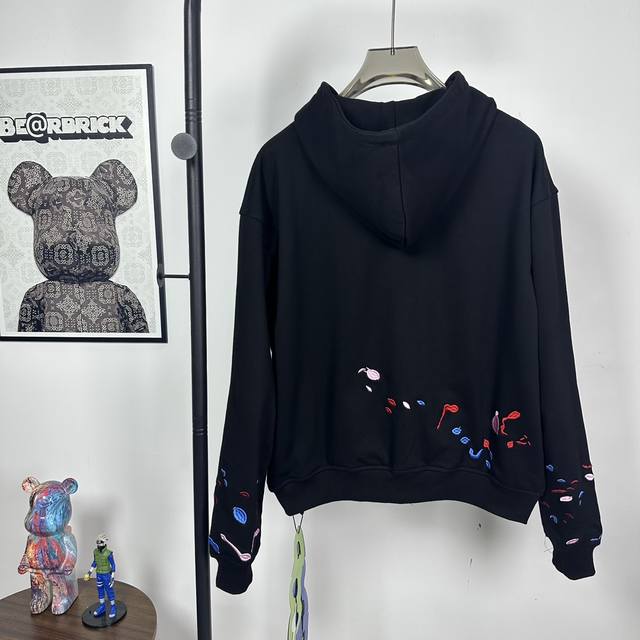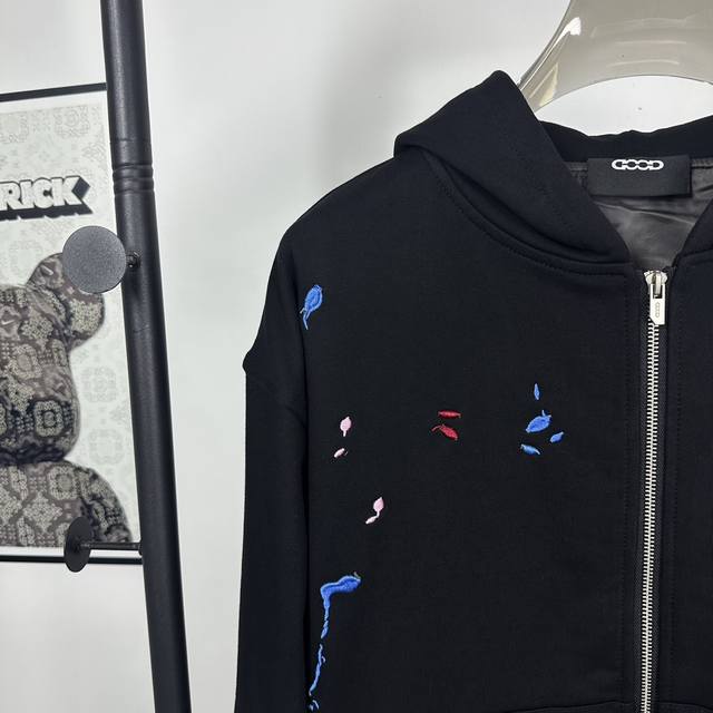 Style No.: Z02 Goodbrand official website style candy embroidery splatter hooded sweatshirt, unisex. Fabric: 500g high-quality material! Fit: Original pattern purchased from the official website! Tags: 20cm custom hangtag from the official website! Ribbed: All 22 thread, distinguishing it from the cheap 11 thread used in the market! Craftsmanship: Heavy-duty embroidery, exuding a high-end feel! Fabric, fit, size, workmanship, color, and tags are all original patterns. Don't compare it with cheap market products; the fit and weight are far superior to the inferior versions on the market. Colors: Black, White. Sizes: S-XL.