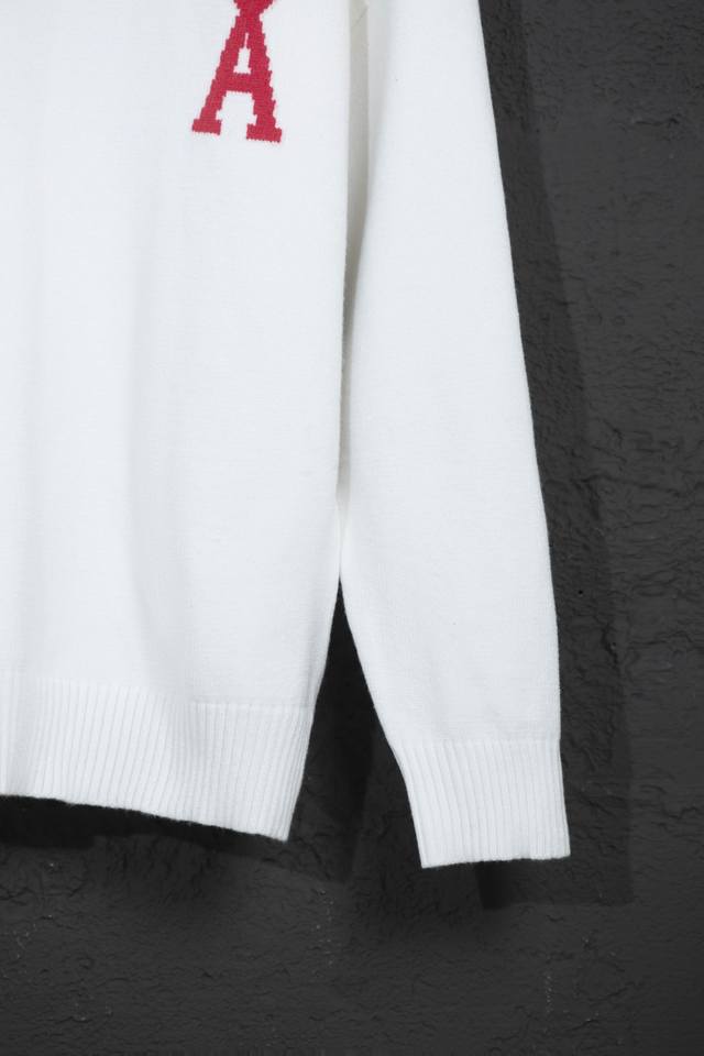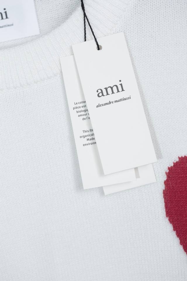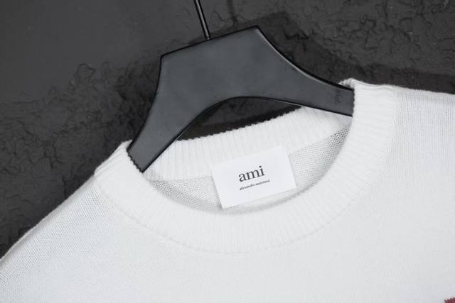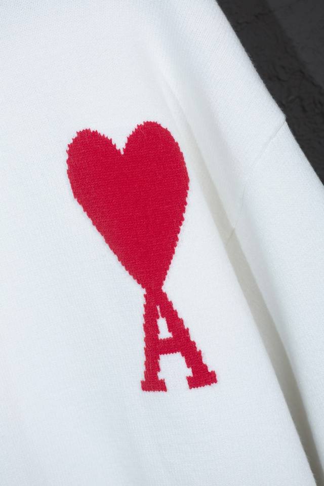 Style Number: Mq801 Ami Classic Heart Series Crew Neck Sweater Highest Version Supports Comparison Colors: White with Red Heart, Sizes: S-XL