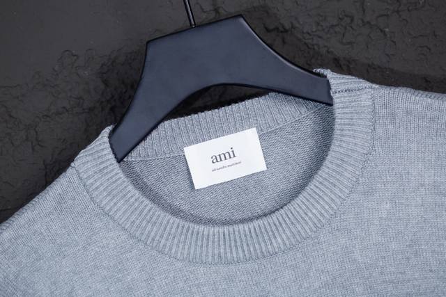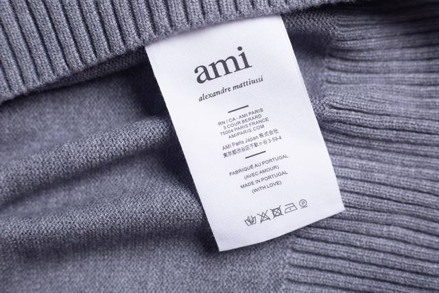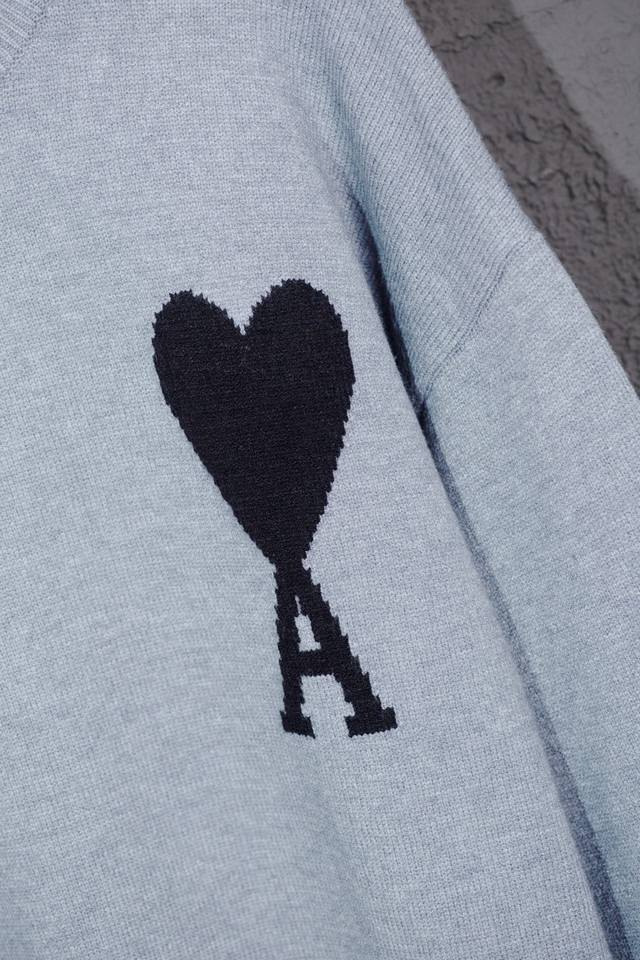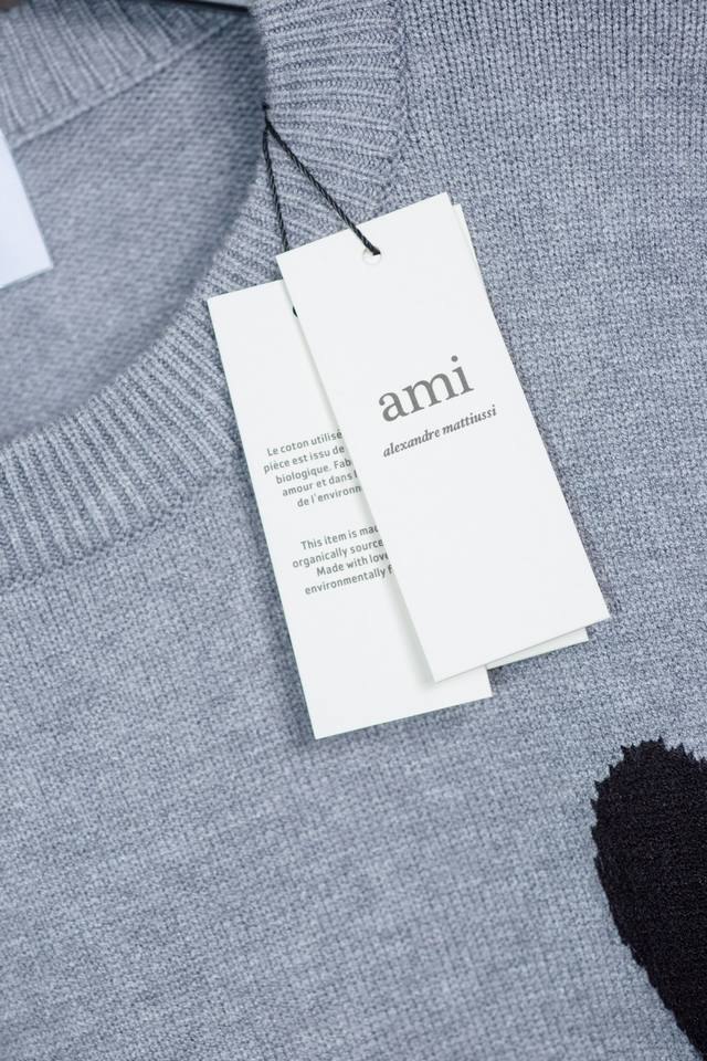 Style Number: Mq801 Ami Classic Heart Series Crew Neck Sweater Highest Version Supports Comparison Colors: Gray with Black Heart, Sizes: S-XL
