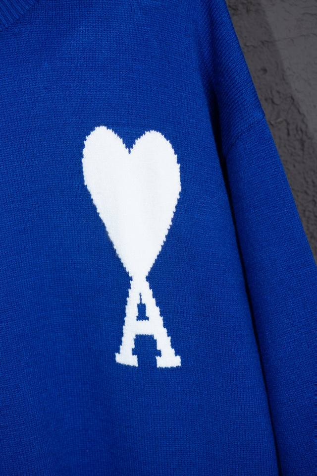 Style Number: Mq801 Ami Classic Heart Series Crew Neck Sweater Highest Version Supports Comparison Color: Klein Blue Size: S-XL