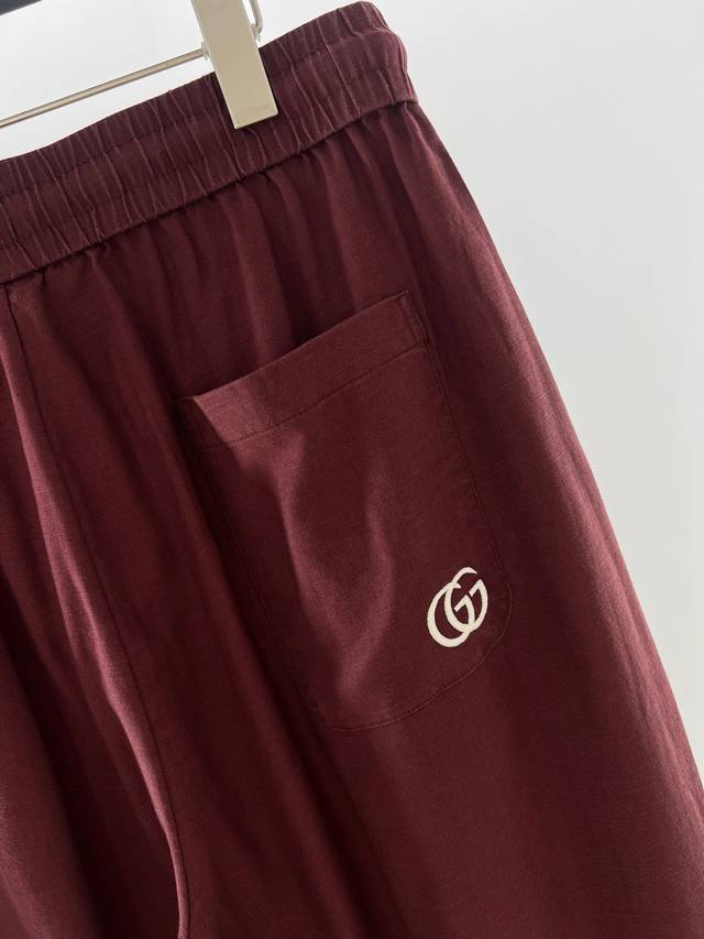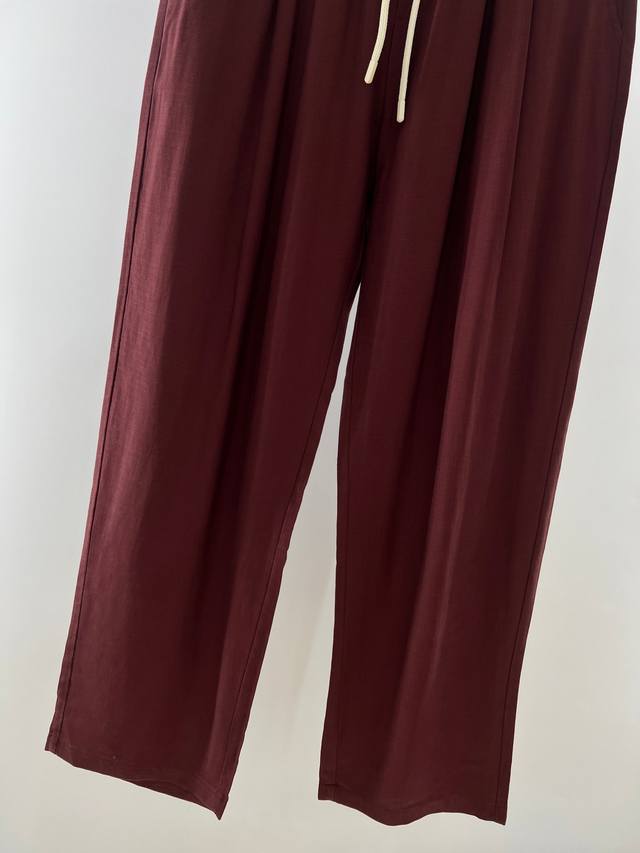 Summer Must-Have! Guc** Burgundy Linen Pants, the ultimate in breathability! The much-asked-about Guc** linen pants are here! The burgundy color exudes sophistication. Made from a soft, golden blend of 75% Tencel and 25% linen, these pants offer 360