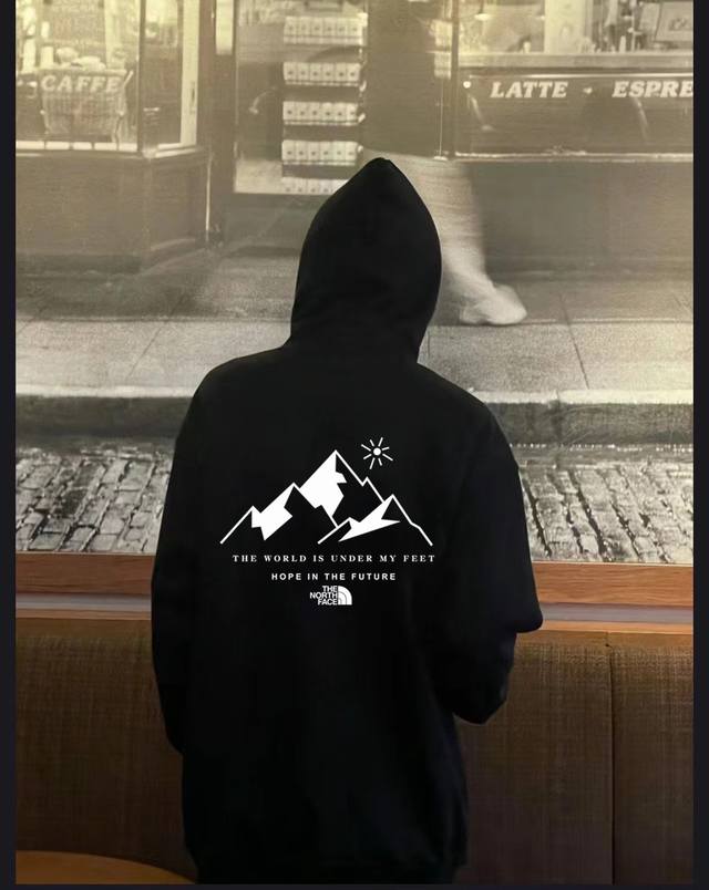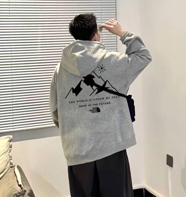 The North Face Extreme Sports New Theme Spring/Autumn Hooded Sweatshirt. Made with Xinjiang cotton fabric, it's pill-resistant, colorfast, and shape-retaining. Super high quality, incredibly soft to the touch, and the fabric is sturdy and thick. Perfect for layering or wearing alone! High-quality workmanship from a major factory, with meticulous attention to detail and perfect stitching. All-cotton ribbed cuffs and hem for a secure and comfortable fit! Attention to detail! High-quality workmanship! Truly a high-quality item. Colors: Black, Light Gray. Sizes: M, L, XL. M: Shoulder width 54cm, Chest 120cm, Length 70cm. L: Shoulder width 56cm, Chest 125cm, Length 72cm. XL: Shoulder width 58cm, Chest 130cm, Length 74cm. Measurements are manual, with an error of approximately 1-2cm.