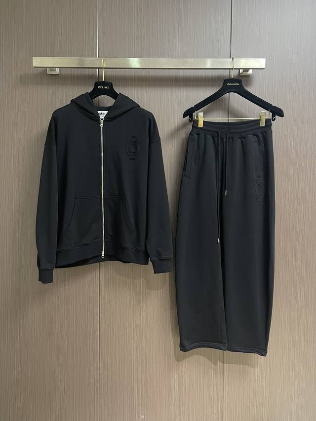 Maison Margiela Mm6 2025Fw Early Spring New Logo Hooded Sweatshirt and Sweatpants Set High-end Double-ply Pure Cotton 400G Heavyweight Fabric Custom Stretch Ribbed Knit Same Dyeing, All Labels Complete Unisex Style. Sizes: M-XL