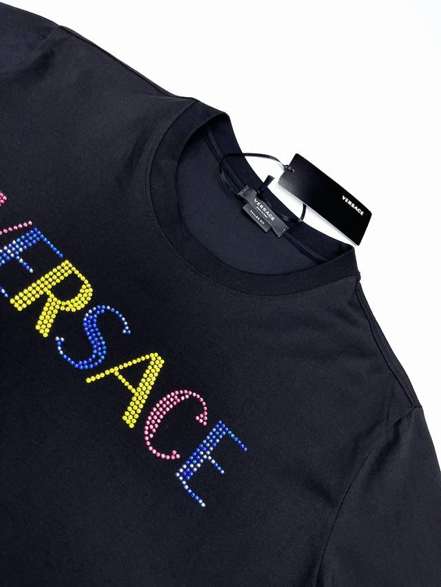 Versace* 24Ss New Short-Sleeve T-Shirt, featuring a custom-designed Australian diamond-printed colorful letter logo pattern, made from imported double-strand mercerized cotton fabric that is soft, delicate, and comfortable against the skin. Made in a finely crafted factory, this T-shirt is very stylish and a must-have for men. All tags are included. Sizes: M-4XL