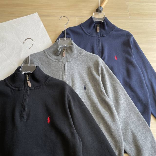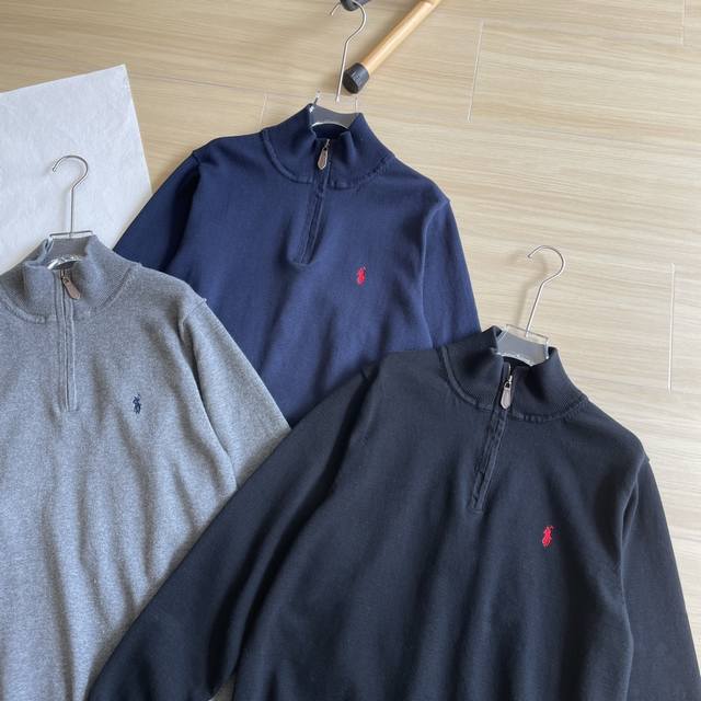 Winter Sweater Recommendation: Ralph Lauren Unisex Comfortable and Versatile American Embroidered Logo Half-Zip Knit Sweater. A classic must-have! Super practical! Features a super comfortable fleece lining, high-weight custom-knit fabric, and a matching dyed ribbed neckline. Enhanced overall comfort and versatility! Suitable for all body types. Unisex. Classic half-zip collar design. An essential wardrobe staple! New outdoor colorway for Fall/Winter 2024. A refreshing look! A relaxed and casual style! Os-fit, not bulky. The fabric has undergone garment washing, resulting in a very strong texture and feel. The hand feel is also quite soft after washing. Unisex! Colors: Black, Light Gray, Ultramarine Sizes: S-XL S: Chest 110cm, Sleeve 58cm, Length 68cm, Shoulder 54cm M: Chest 114cm, Sleeve 59cm, Length 70cm, Shoulder 56cm L: Chest 118cm, Sleeve 60cm, Length 72cm, Shoulder 58cm XL: Chest 122cm, Sleeve 61cm, Length 74cm, Shoulder 60cm