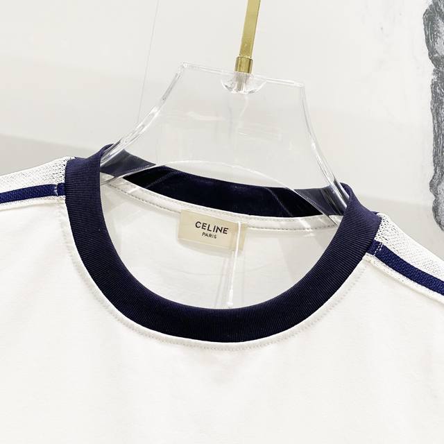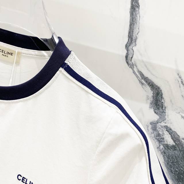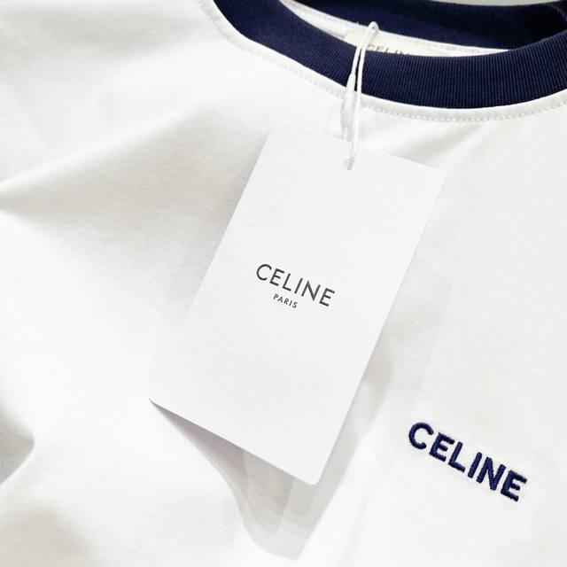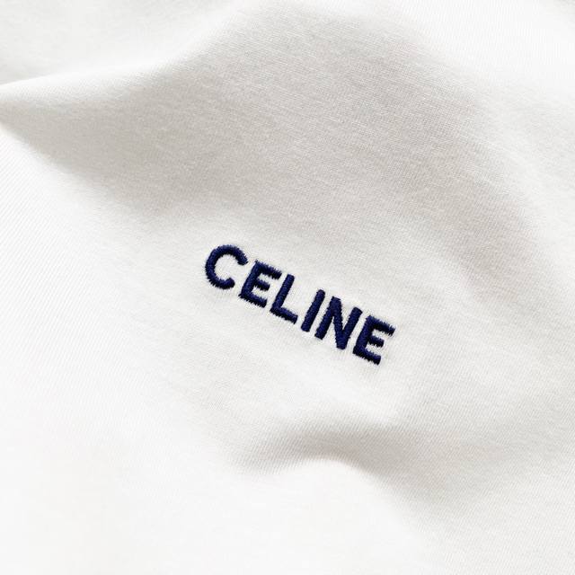 Women's Celien 2025 New Arrival, 50-count Double Ice-Cool Cotton G Fabric, Ribbed Sleeves with Embroidered Logo and Letter Label, Official High-Quality Version, Stylish, Versatile, Trendy, Pure Original Quality Fabric, Complete with Hangtag, Neck Label, Washing Label, and Wheat Flour Labels, Colors: Royal Blue, White, Sizes: SL
