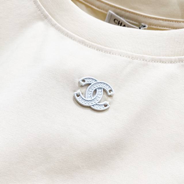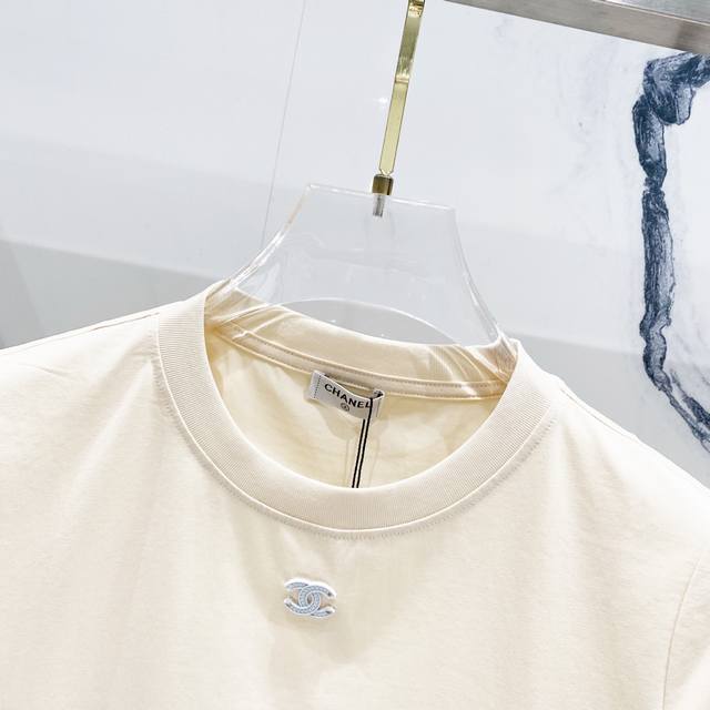 Women's Chanel 2025 New Arrival, 50-count Double Ice-Cool Cotton G Fabric, Simple Chanel Style Hardware, Small Logo, Official High-Quality Version, Fashionable, Versatile, Trendy, Pure Original Quality Fabric, Complete with Hangtag, Neck Label, Washing Label, and Three Tags, Colors: Black, White, Apricot, Sizes: SL