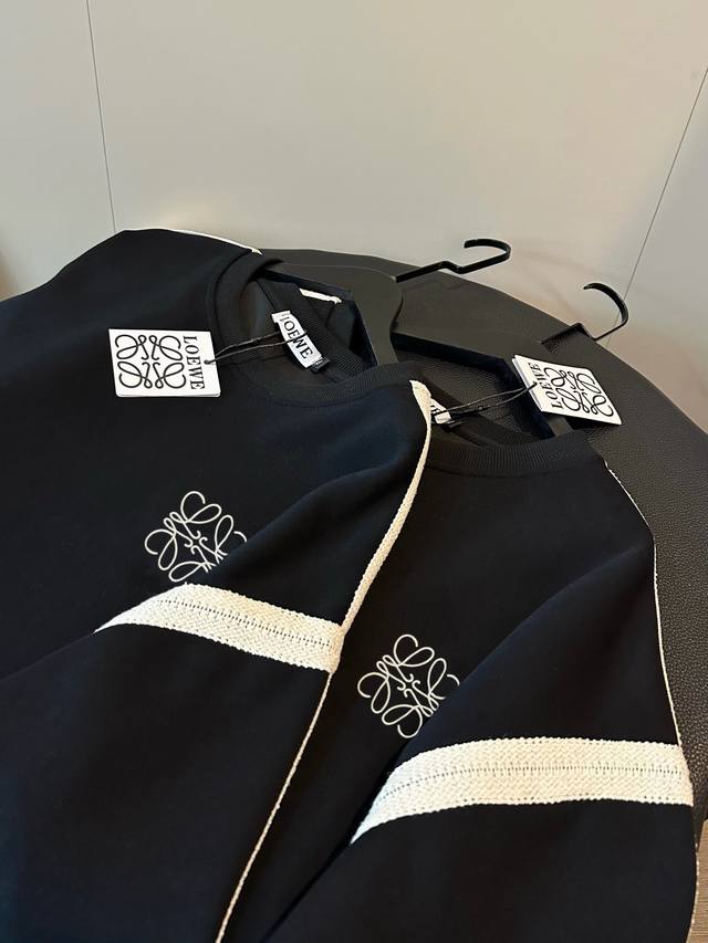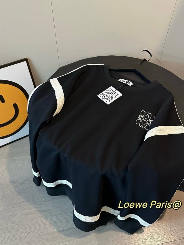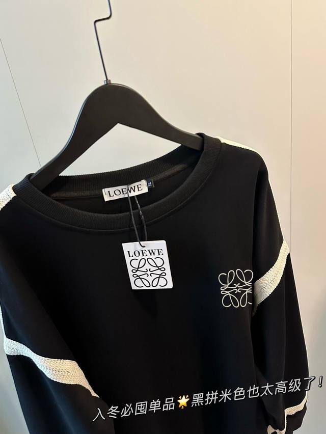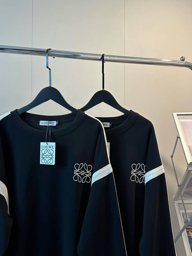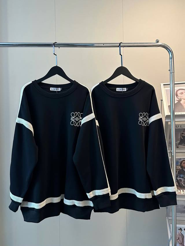 Women's Loewe New Lace Embroidered Ribbon Crew Neck Sweatshirt A must-have for winter! The black and beige color combination is so sophisticated! The added striped design inside the sweatshirt gives it a relaxed feel. The logo is embroidered with thousands of stitches on the chest. Made of 380g pure cotton, it feels comfortable. The dropped shoulder design is super flattering and slimming, creating a "no-pants" look that makes your legs look longer! Color: Black Size: M-XL M Bust 112cm Length 66cm L Bust 114cm Length 68cm XL Bust 116cm Length 70cm