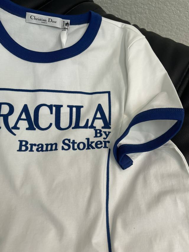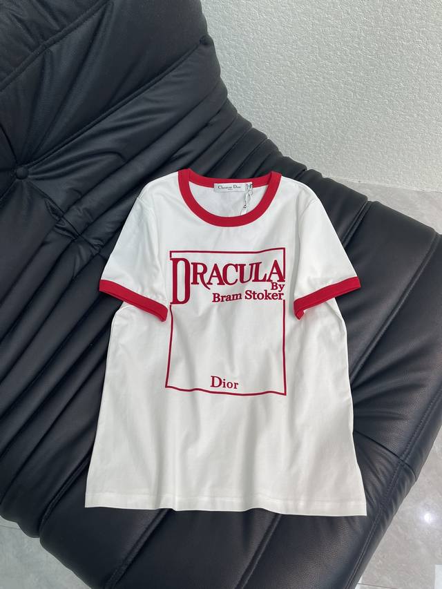 Dio*26 Spring/Summer New Ribbed Color-Blocked Crew Neck Logo Short-Sleeve T-Shirt. Made of custom Yb mercerized cotton, soft and skin-friendly, comfortable and stylish. Regular short-sleeve design with ribbed trim at the neckline and cuffs. The color-blocked design features a square logo with varying letter sizes on the front, adding depth and a fashionable touch. The regular fit is forgiving and easy to wear for everyday outings or parties. Sizes: Sml Aa. DDD