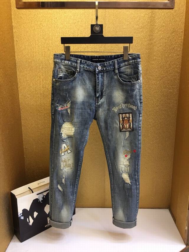 Gucci: Spring/Summer New Arrival Denim, available simultaneously in stores and online. High-quality, top-tier quality, classic denim! Features an embroidered beetle design on the pants, stylish and a must-have for fashionable men! 1:1 replica, flawless, and looks amazing on! Sizes: 28-36. Please provide your waist measurement when ordering.