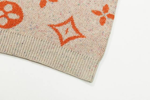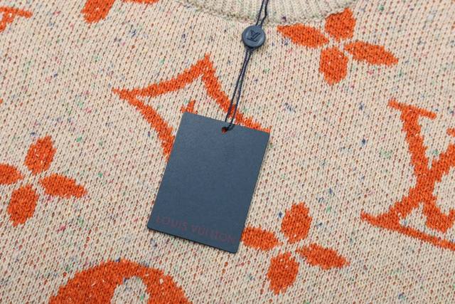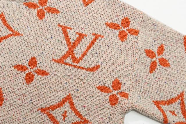 Louis Vuitton Crew Neck Pullover Sweater with Logo Jacquard All-Over Design, Long Sleeve, Emphasizing Details and Quality, Unisex Style, Color: Apricot, Sizes: Xs, S, M, L