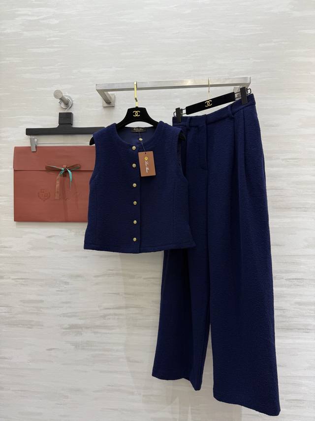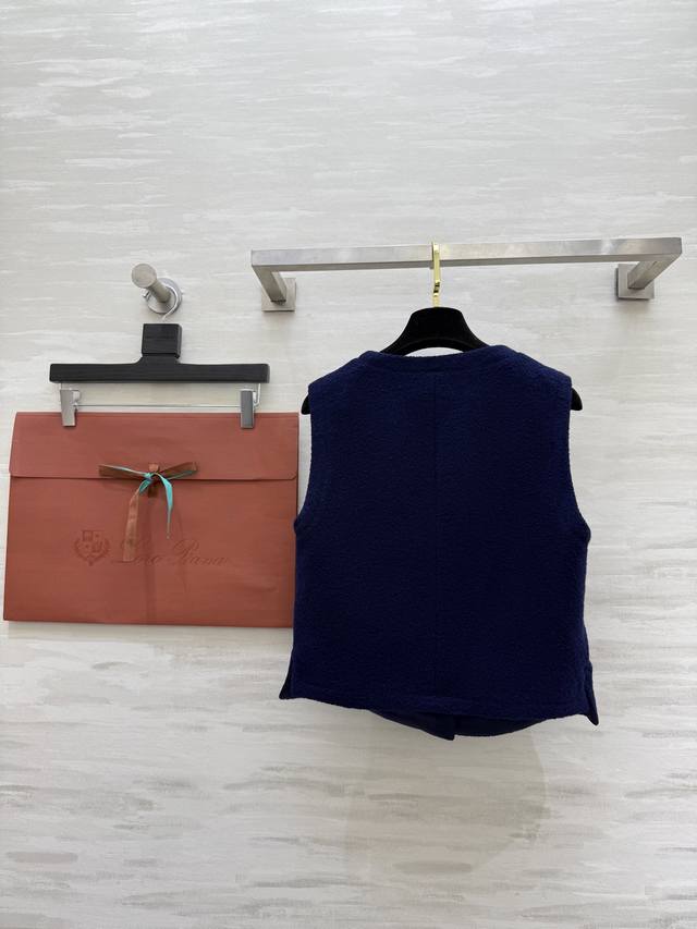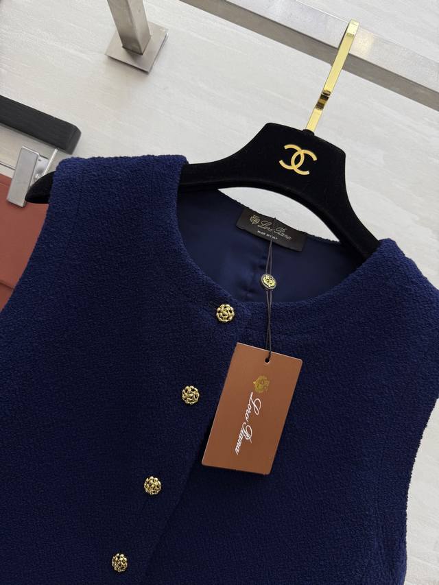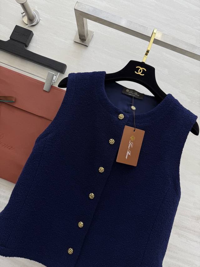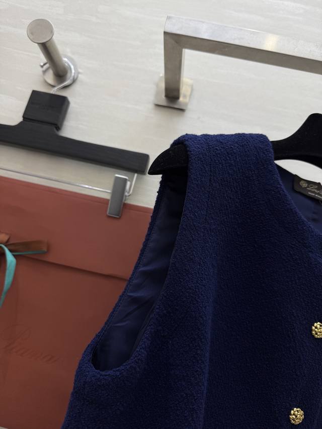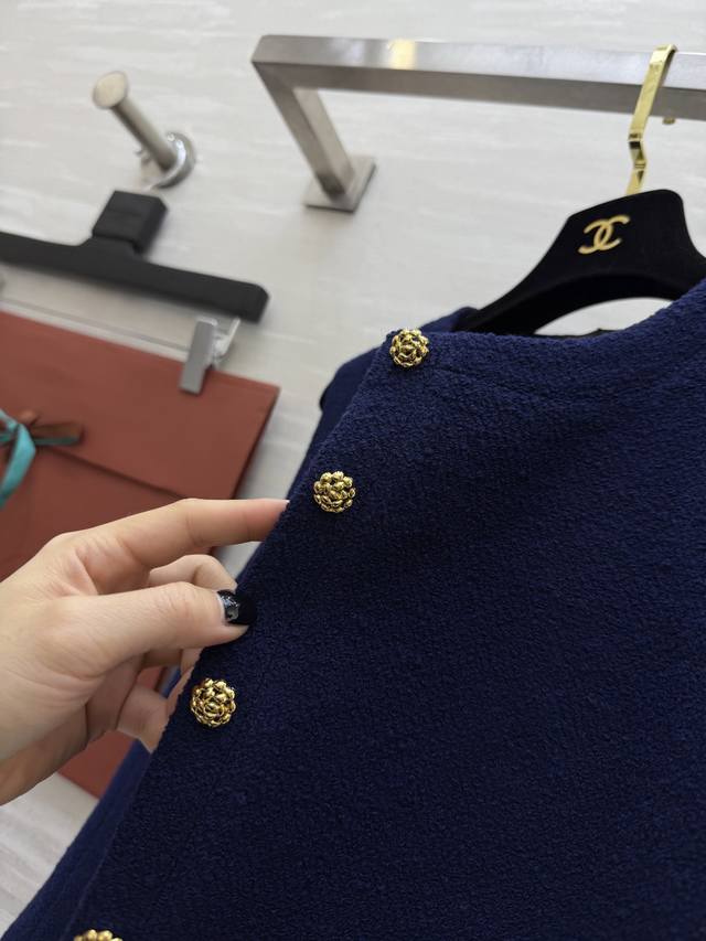 Lp New Dark Blue Wool Tweed Vest - Thick and Warm, Sleeveless Design with Perfect Gold Button Details, Round Neck Cut - Simple and Elegant, Suitable for Both Commute and Leisure - Classic "Old Money" Style - Pair with High-Waisted Pants or Skirts for an Elegant Retro Look! High-Quality In Stock. Size: SMLS - Bust: 88cm, Length: 47cm.