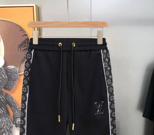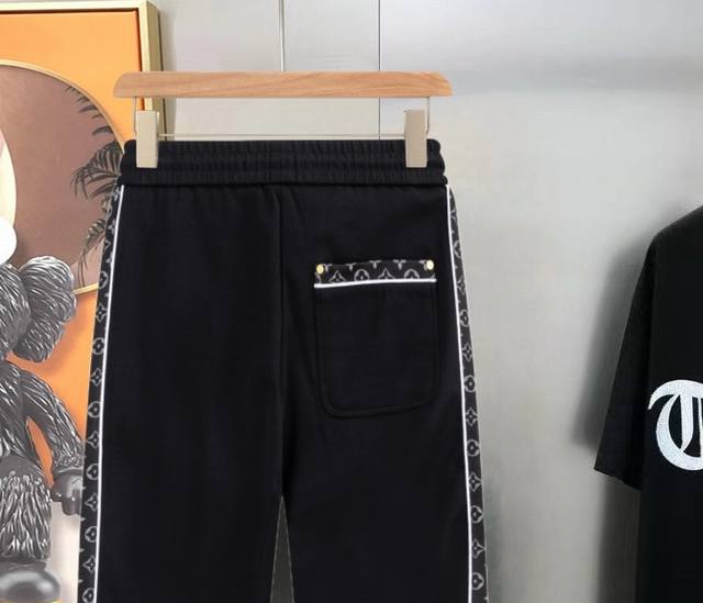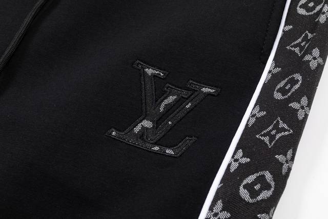 Lv New men's casual sweatpants from Louis Vuitton, high-end custom-made, fashionable and versatile style, 3D embroidered letter logo design, original imported 100% knitted pure cotton fabric, imported hardware accessories. Elegant and handsome, a refreshing look! Exquisite workmanship and details from the OEM factory. Flattering on all body types, a must-have. Sizes: M-3XL. Largest size fits approximately 185 lbs. Black.