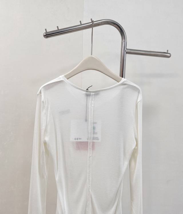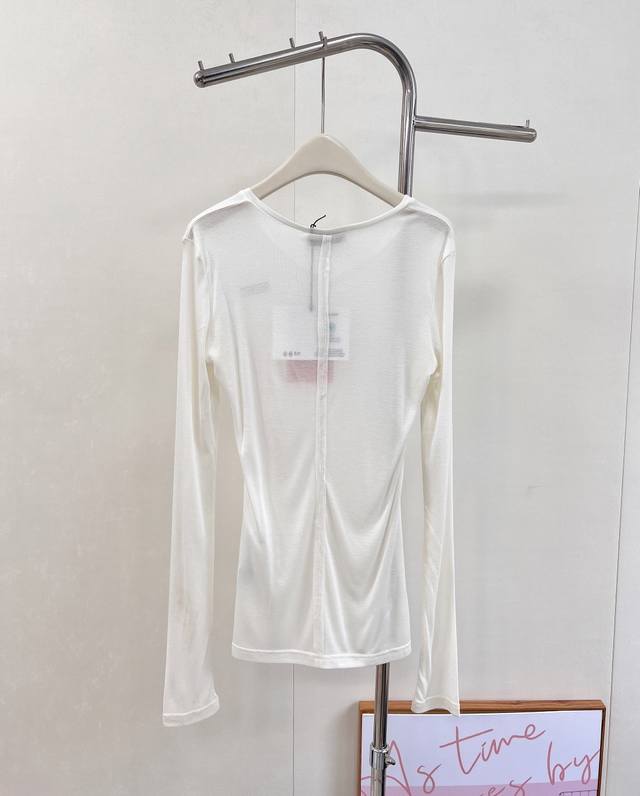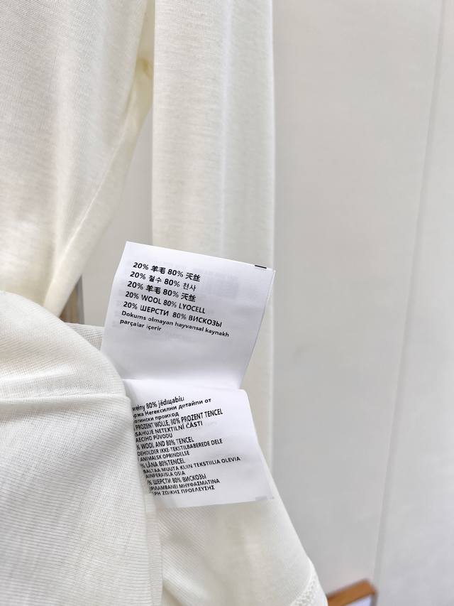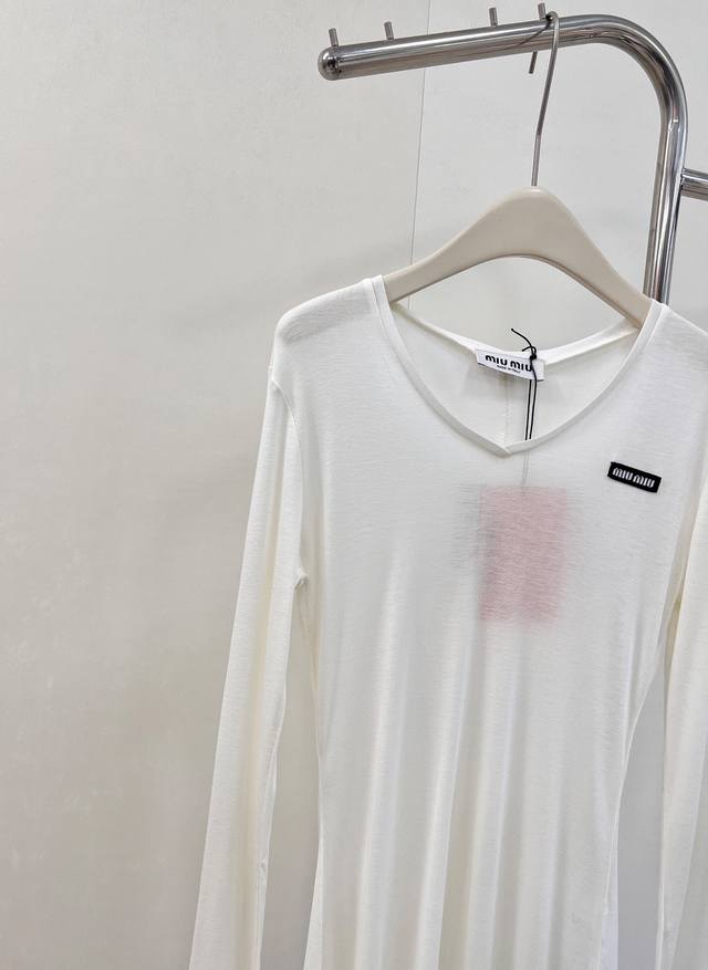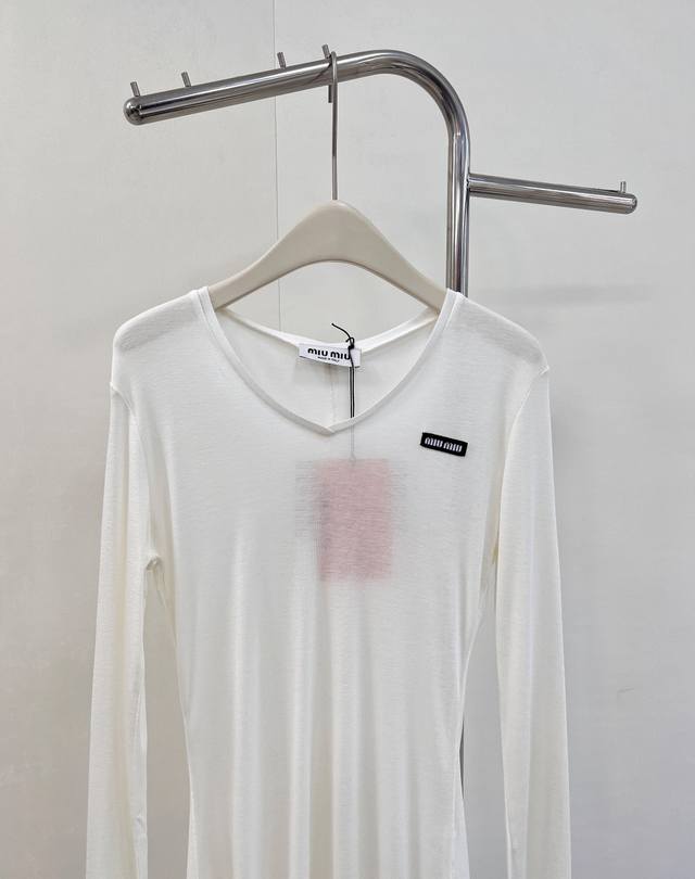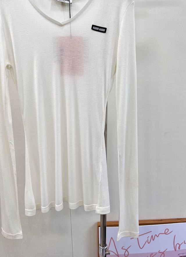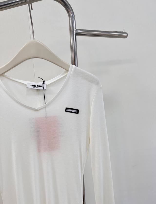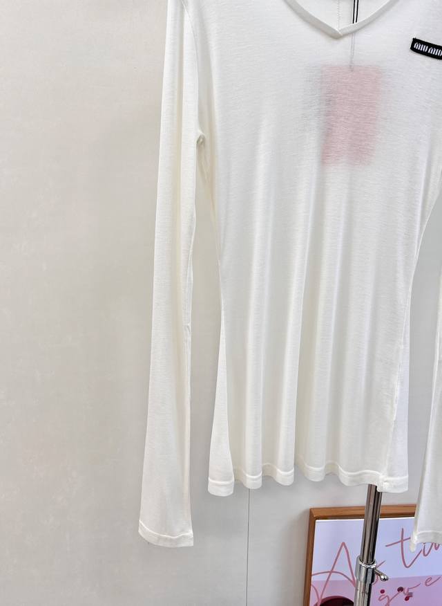 Miumiu 2025Ss New Tencel Wool Base Layer Top. A must-have layering base layer for this fall and winter. Made of Tencel and wool, it's incredibly soft and skin-friendly, providing excellent warmth and breathability. The excellent elasticity flatters all body types. If you dislike tight base layers that don't hide your figure, you can't miss this one. It conceals flaws and creates a slimming effect while defining the waistline. The back features a stitched design that adds definition and makes the back appear thinner and slimmer. We recommend layering two pieces for added warmth and a stylish look. The loose fit aligns perfectly with this year's trendy style. Designed with a minimalist aesthetic and classic cut, it creates an effortless look. All tags are included. Available in two colors. Sizes S, M, L, D, D, Code M. DDD