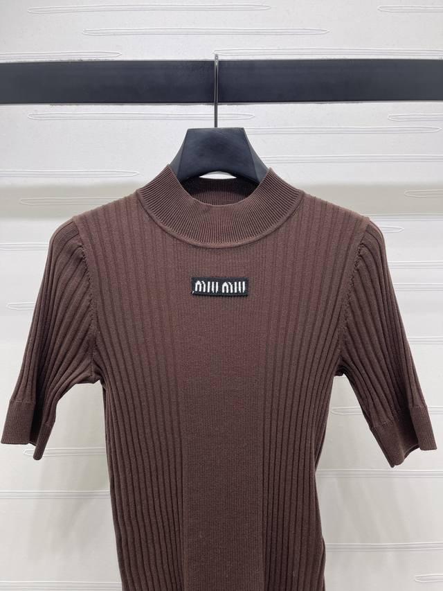 New Arrival! High-end Original Quality Miu Mi*2026 Early Spring Collection! Knitted Stand Collar Short Sleeve! Youthful and Stylish, Super Versatile! Letter Logo Design, Embroidered Decoration, Luxurious and High-End! Classic Stand Collar, Slim Fit, Versatile, Flattering, Stylish and Sophisticated! 3 Colors! Sizes SM-L3! High-Quality Bulk Item A706B270C DDD