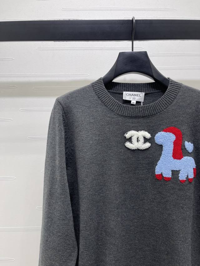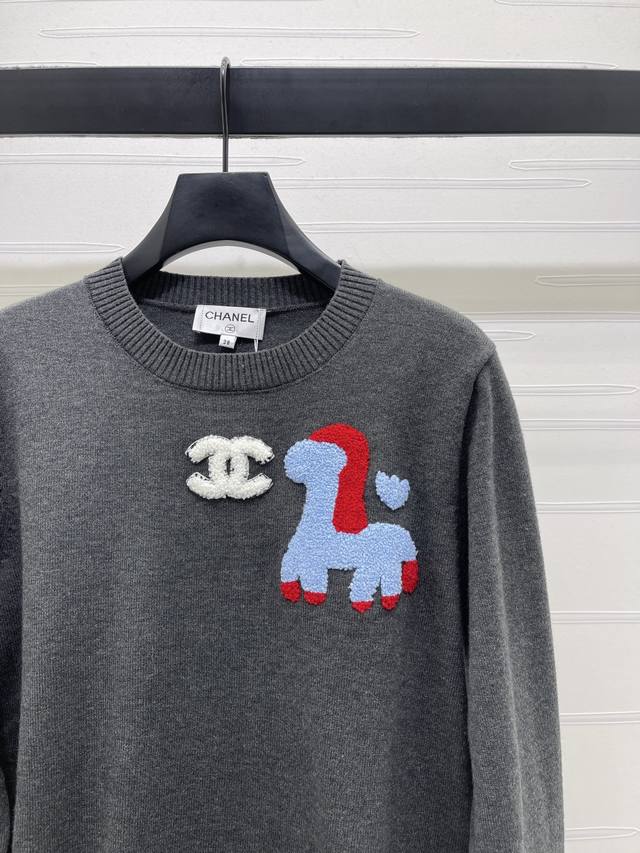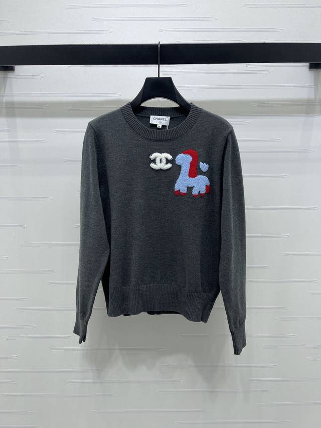 New Arrival! High-quality original Chanel* 2026 Early Spring Collection! Embroidered Knit Sweater: Soft knit fabric with a horse and double C logo embroidery on the chest, fun yet classic, highly recognizable. Crew neck and long sleeves, suitable for everyday wear, perfect for a festive look, easily creating a personalized style! 2 colors! Sizes SM-L3! High-quality bulk order A706B360C DDD