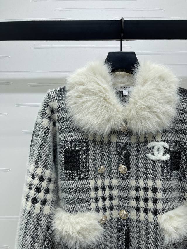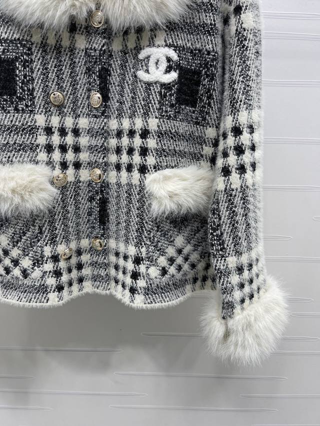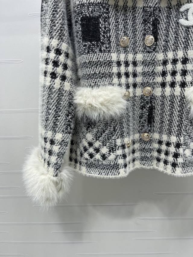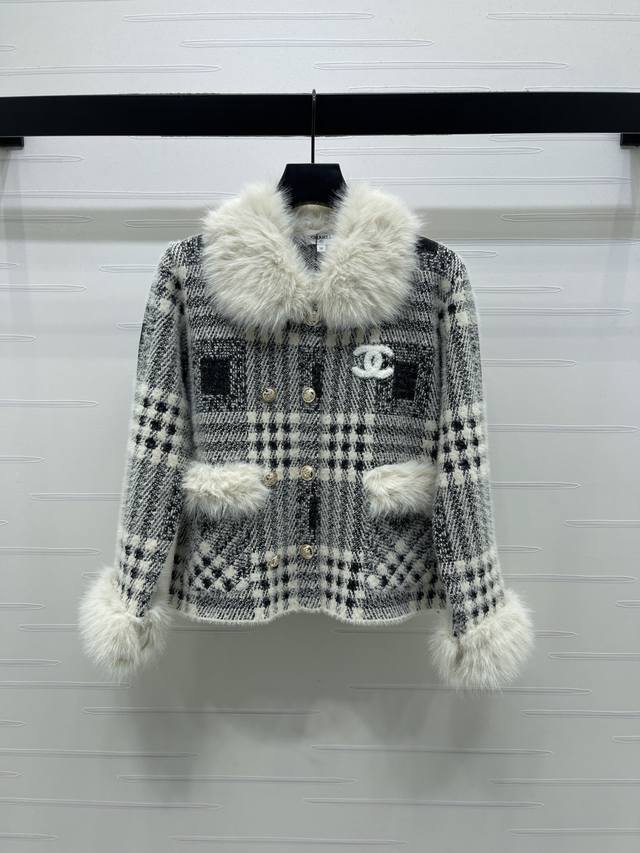 New Arrival! High-Quality Original Chanel* 2026 Early Spring Collection! Plush Collar Plaid Knit Cardigan! Made with custom wool knit material, it boasts a superior texture, is soft and comfortable, features a retro plaid color-blocked design, a towel embroidery on one side of the chest, a double C embroidered logo, and custom double-breasted buttons. The plush details on the collar, cuffs, and double pockets complement each other perfectly. Easy to wear for everyday style, warm and fashionable! 2 colors! Sizes SM-L3! High-quality bulk order A706B390C DDD