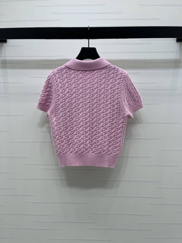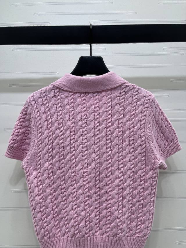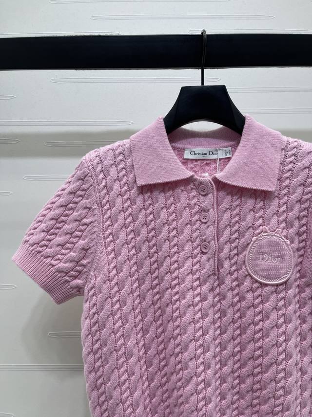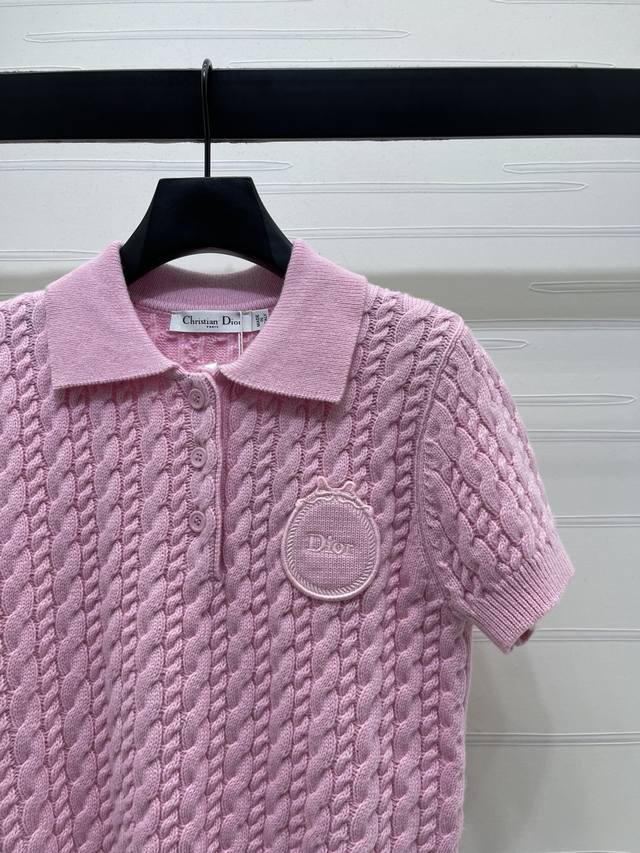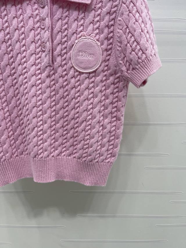 New Arrival! High-Quality Original Dio* 2026 Early Spring Collection! Collared Cable Knit Short-Sleeve Shirt! Crafted with custom Yb cashmere yarn, it boasts a premium feel, is incredibly soft and comfortable. The collared knit short-sleeve design is versatile and timeless in a solid color. Features include a half-open button closure, a vertical cable knit texture, a single-sided letter logo on the chest, and ribbed edging throughout, highlighting exquisite details and a sophisticated style. It's youthful, chic, and has a playful, preppy vibe! Available in 2 colors! Sizes SM-L3! High-quality bulk order A706B410C DDD