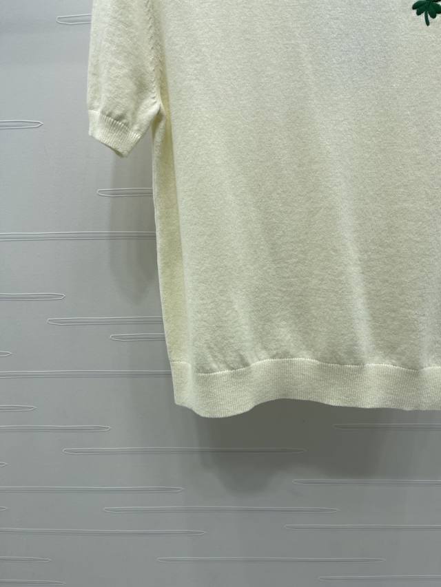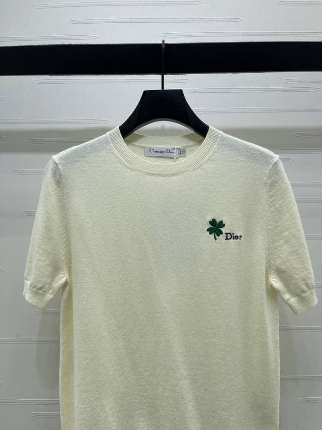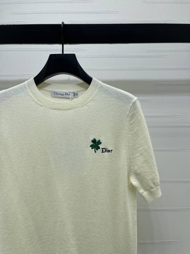 New Arrival! High-Quality Original Dio* 2026 Early Spring Collection! Crew Neck Logo Knit Short-Sleeve T-Shirt! Crafted from custom Yb wool yarn, it boasts a premium feel, is incredibly soft and comfortable. The crew neck knit short-sleeve design is versatile and timeless in a solid color, accented with a single four-leaf clover logo on the chest. Ribbed edging throughout the body highlights the exquisite details and sophisticated style. It's youthful, chic, and exudes a fresh, artistic vibe! Available in 1 color! Sizes SM-L3! High-quality bulk order A706B360C DDD