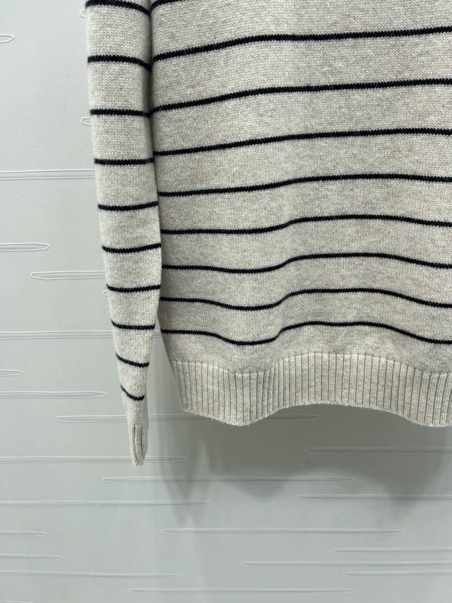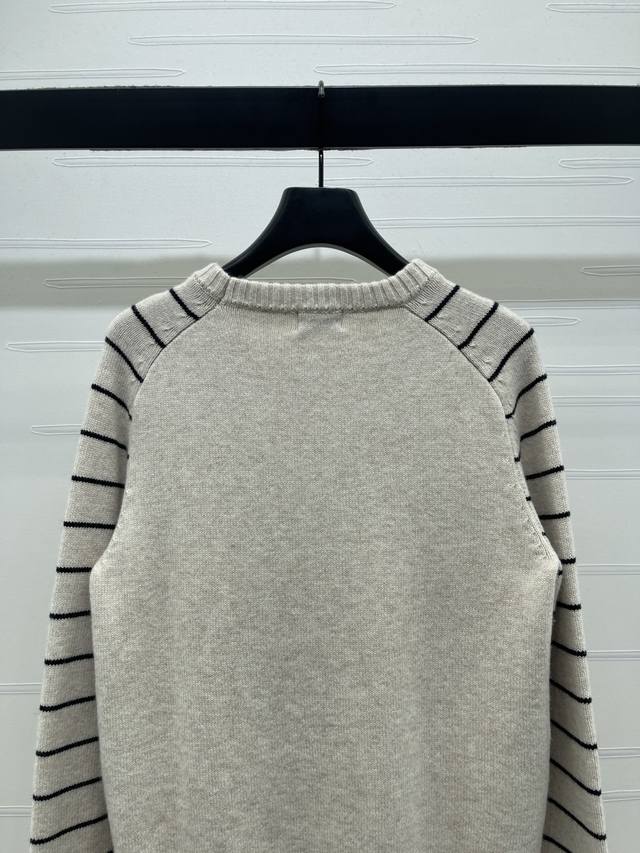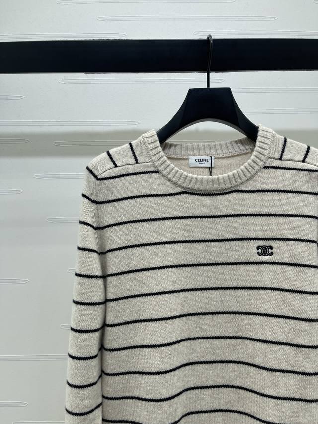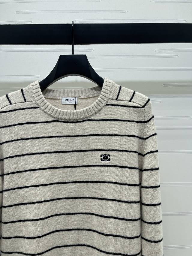 New Arrival! High-Quality Original Single Item - Celin*2026 Early Spring Newest Collection! Striped Knit Long-Sleeve Top! Custom-made wool yarn, dyed and color-matched for perfect reproduction of its original appearance. Soft, skin-friendly, comfortable, and stylish pullover long-sleeve top. The striped trim contrasts with the body, creating a layered look. The entire top features interwoven stripes. Embroidered Arc de Triomphe logo on the chest with crochet details adds a strong retro style. The regular fit is versatile and flattering for all body types. Playful, youthful, and brightening. Perfect for everyday wear or casual gatherings! 1 color! Sizes SM-L3! High-quality bulk order A706B320C DDD