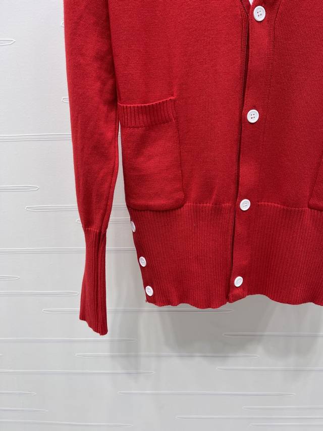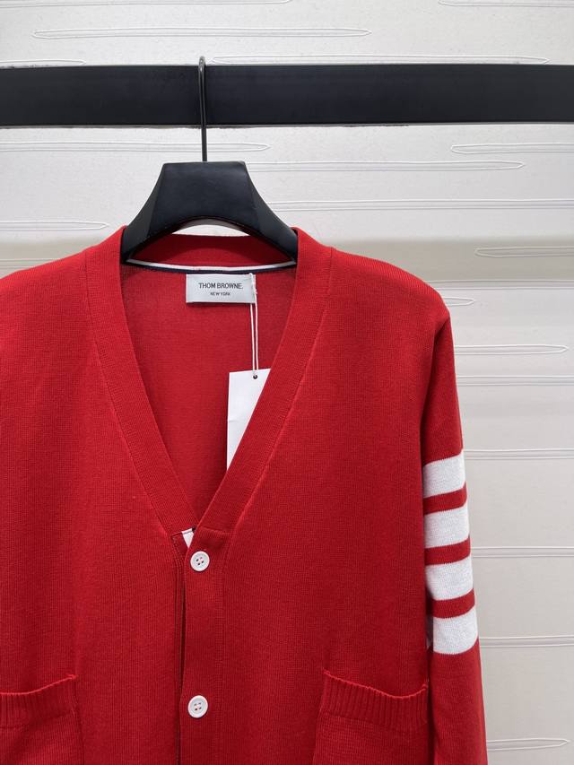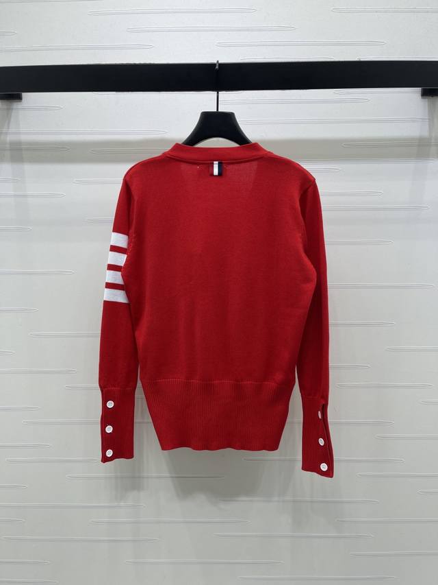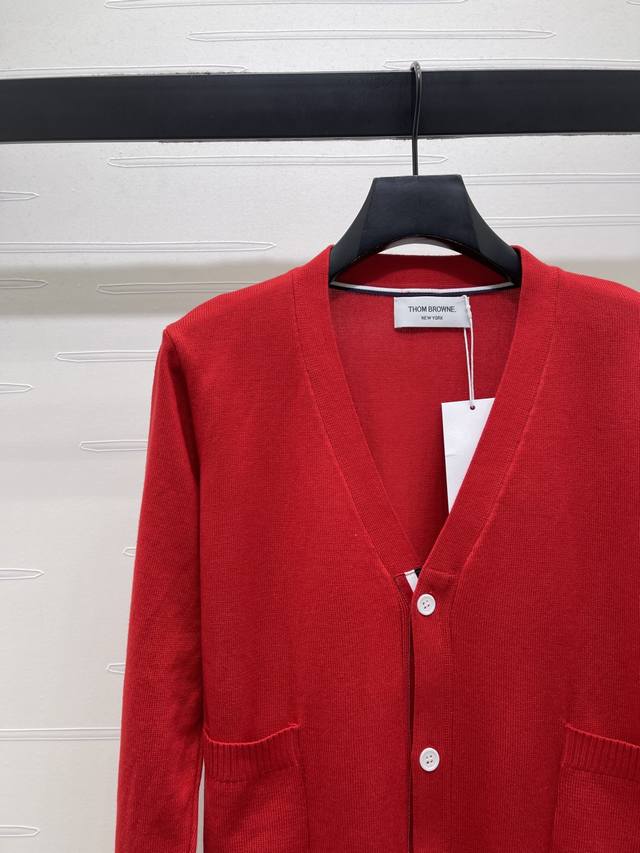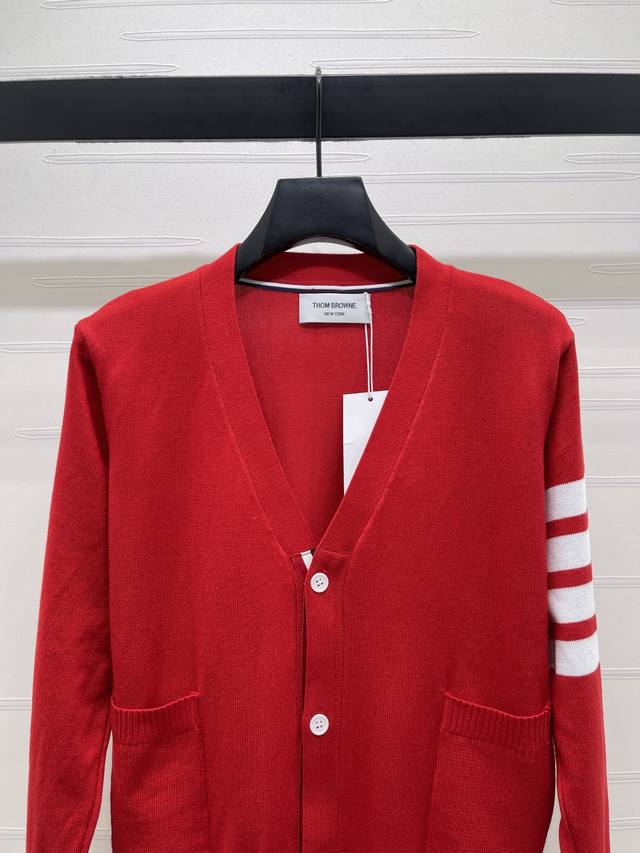New Arrival! High-Quality Original Thom Browne 2026 Early Spring Collection! V-Neck Long-Sleeve Cardigan! Crafted from custom wool yarn, this cardigan boasts a luxurious feel, offering exceptional comfort and softness. The V-neck long-sleeve design features a finely crocheted texture throughout, creating a rich, grainy look. Elastic edging accentuates the exquisite details, while the signature stripes on the sleeves add a touch of retro preppy style, making it playful, youthful, and flattering for everyday wear or parties! Available in 1 color! Sizes SM-L3! High-quality bulk order A706B350C DDD