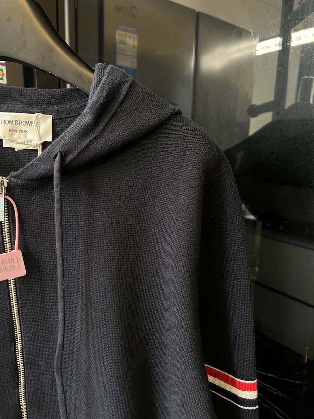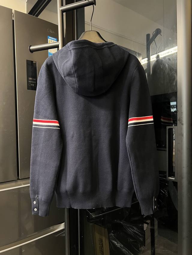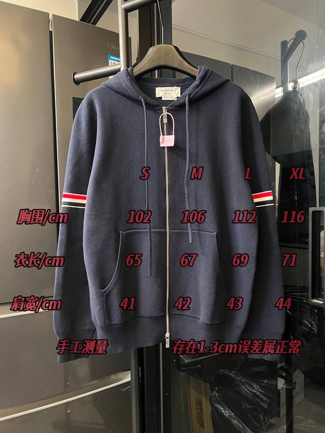 Next day Ddd Thom Browne Tb 25Fw Double-sleeved cardigan sweater basic wool blend zip-up jacket navy blue DDD Ddd Made with 32-count double-ply colored yarn and a blended wool fabric, this garment features a four-square, one-open knit pattern on the body. The double sleeve labels are woven on an imported automatic knitting machine with tight stitches. The red, white, and blue double sleeve labels are knitted with open stitches, which enhances the texture of the fabric. The two-color buttonholes require the machine to be set to its tightest setting, significantly increasing the chance of yarn breakage and waste. Therefore, this seemingly simple garment requires more labor and waste than typical market products to achieve the desired effect. The buttons on both sides are made of natural shells, and the main label is custom-made. Produced to high standards and with strict requirements, the design is exquisite and elegant, making it more durable and washable. A rare and superior product, worthy of adding to your wardrobe. For machine washing, please use a separate laundry bag and gently machine wash. Do not tumble dry or wash in hot water. Do not soak or expose to direct sunlight for extended periods. Proper washing methods will extend the garment's lifespan. Sizes: S, M, L, XL. See Figure 9 for detailed sizing information.