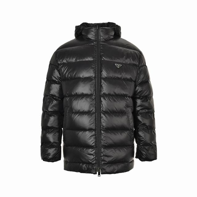 Prada Triangle Logo Nylon Reversible Hooded Down Jacket (Ddd) This short Re-Nylon down jacket is made of environmentally friendly Re-Nylon material. The fabric has a very high density, strong tear resistance, and excellent stiffness and abrasion resistance. Unlike Bird's hard-shell jackets, it is softer and more functional. The biggest highlight of this down jacket is its reversible design. It features a detachable nylon hood, a simple and easy-to-use zipper design, and all tags, care labels, eyelets, snap buttons, and chest labels are custom-made from the original 1:1 mold. Size: S-XL
