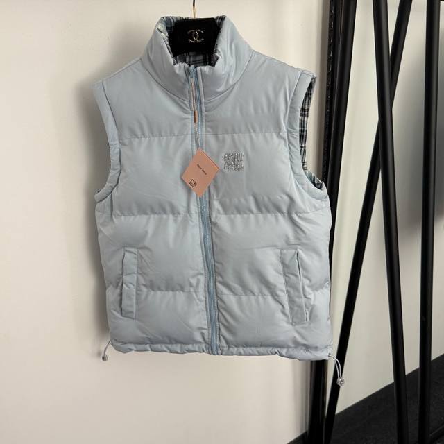 Style No. 20259237 Miumi* New Rhinestone Logo Embroidered Reversible Cotton Vest, Blue, Sizes S-XL, M: Chest 112cm, Length 63cm; Weight: 0.605kg DDD