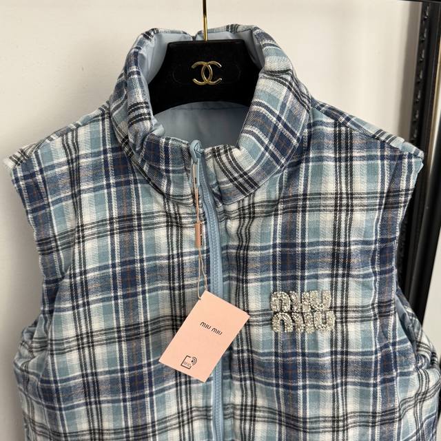 Style No. 20259237 Miumi* New Rhinestone Logo Embroidered Reversible Cotton Ves