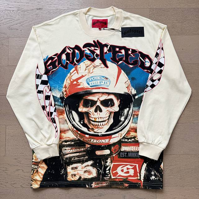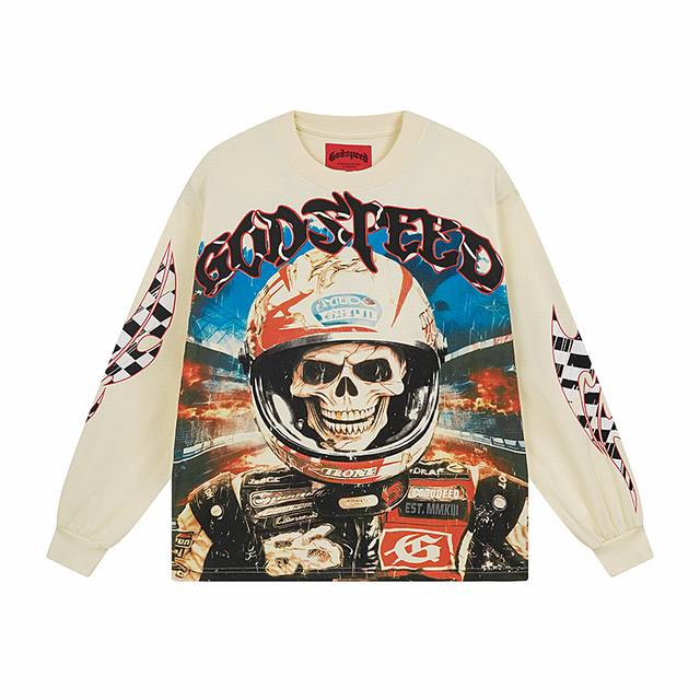 Real shot of Godspeed American trend rock street pure cotton loose bottoming long-sleeved T-shirt long T