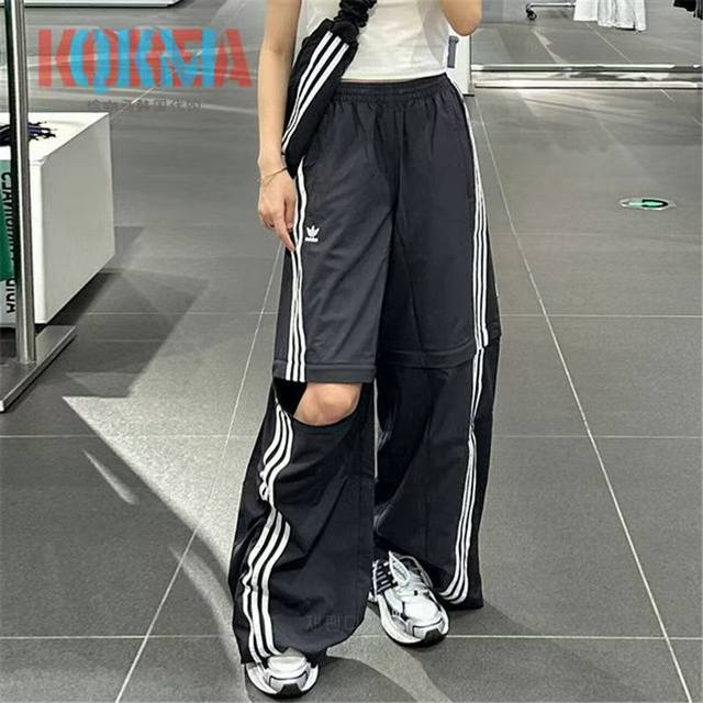 9256 style Adidas clover pants women's three-stripe casual straight wide-leg twi