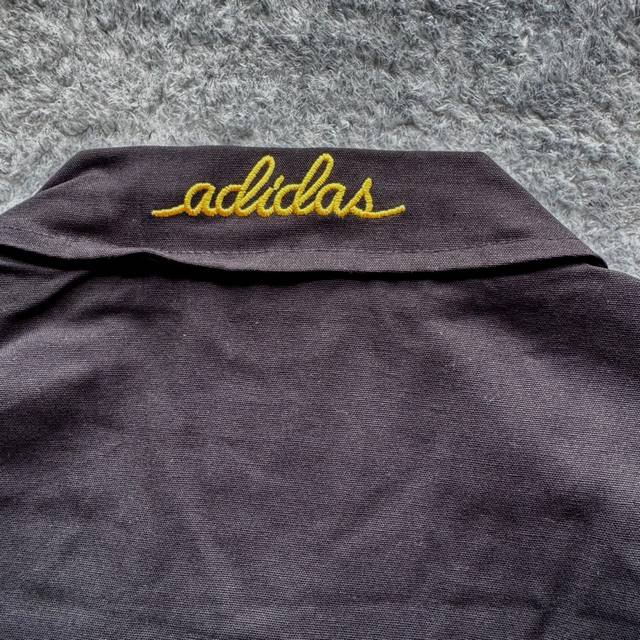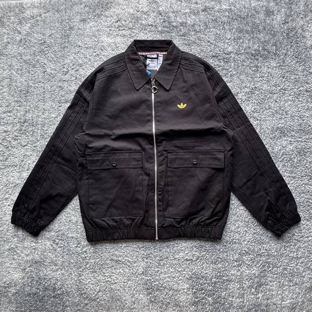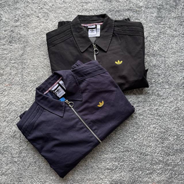 Adidas Originals solid color gold logo embroidered lapel zippered long-sleeved work jacket, same as Jennie's. Top-quality original replica, custom-dyed in the same ink blue fabric, featuring the same jacquard memory fabric with just the right amount of stiffness for a crisp, no-drag look. Perfect for outerwear in spring, summer, and fall, or as a winter inner layer.
