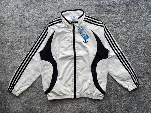 a57# Adidas Trefoil embroidered classic basic stand-up collar windbreaker jacket