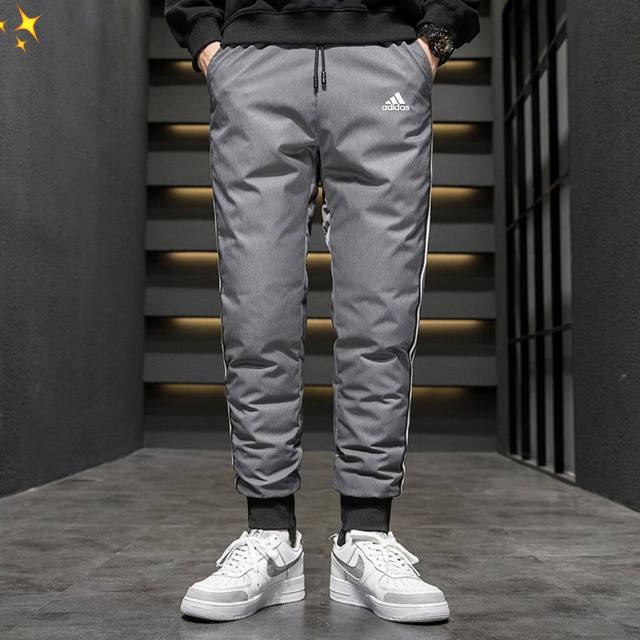 A winter must-have for Adidas men and women! Lightweight outdoor windproof, heat-locking, thickened down pants, 90% white duck down! Made with professional-grade outdoor windproof, waterproof, and breathable fabric, filled with 100% white duck down, lightweight design, very light and warm! Seamless seam sealing process and thin, down-proof fabric effectively prevent down leakage! Classic logo, simple and versatile, stylish without being bulky! Take my advice, get yours now! A top-tier pair of pants for autumn and winter, one pair is all you need for the whole winter! Colors: Black, Gray Sizes: M-5XL