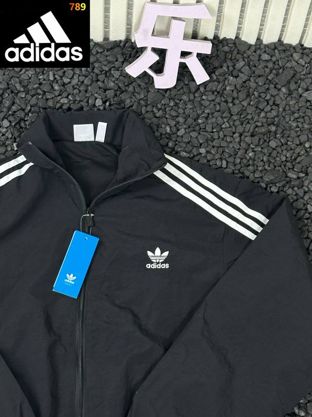 Adidas 25Ss Fall/Winter Sporty Stand Collar Retro Sporty Stand Collar Long Sleeve Jacket, Unisex -