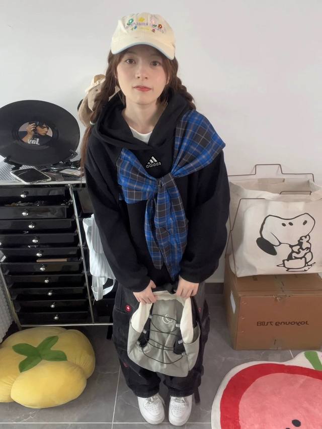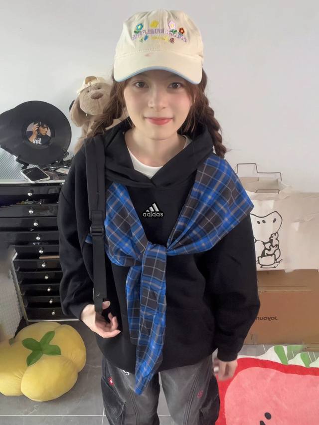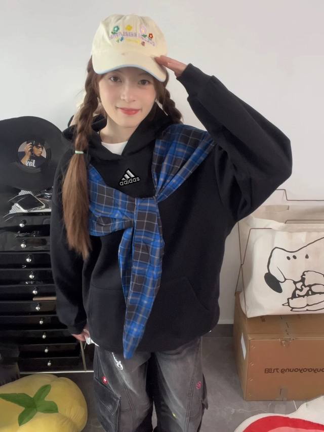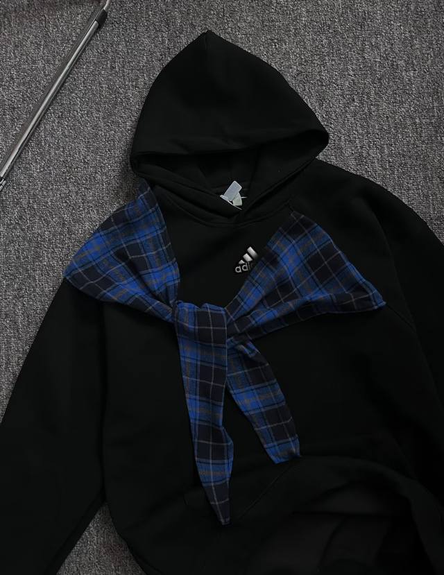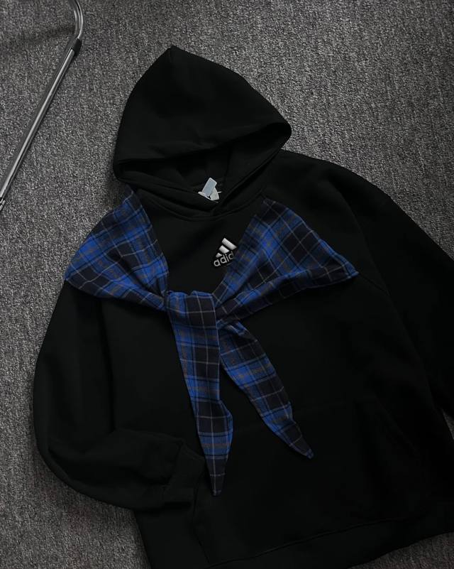 Adidas American preppy bow hooded sweatshirt for women. Relaxed, loose-fitting d