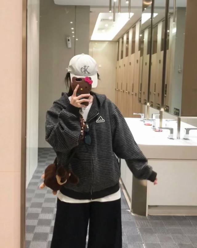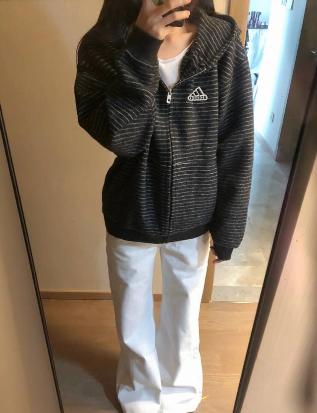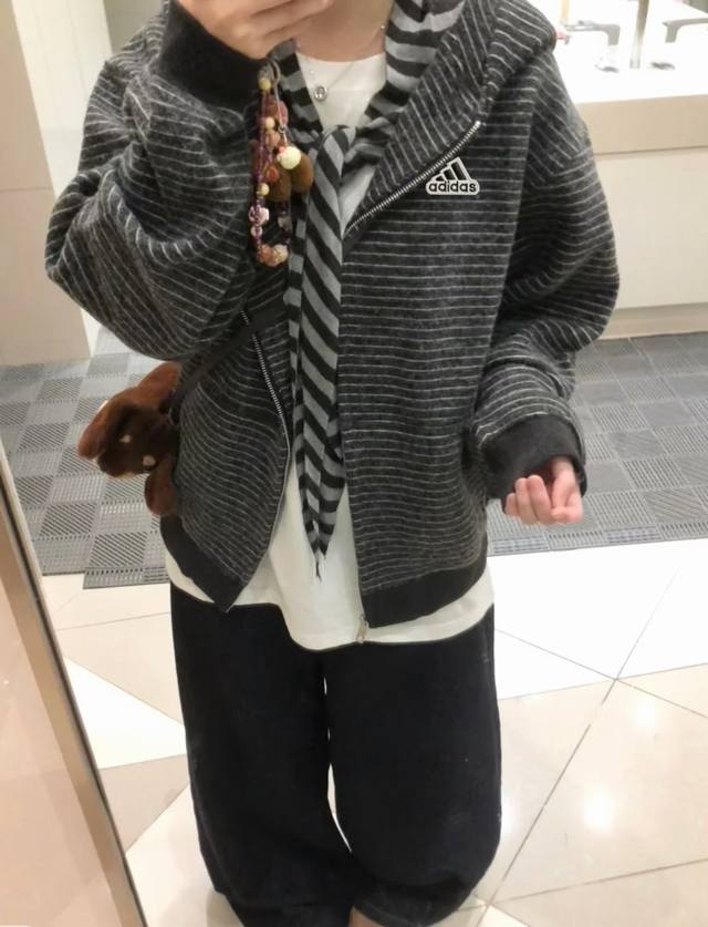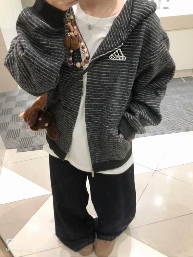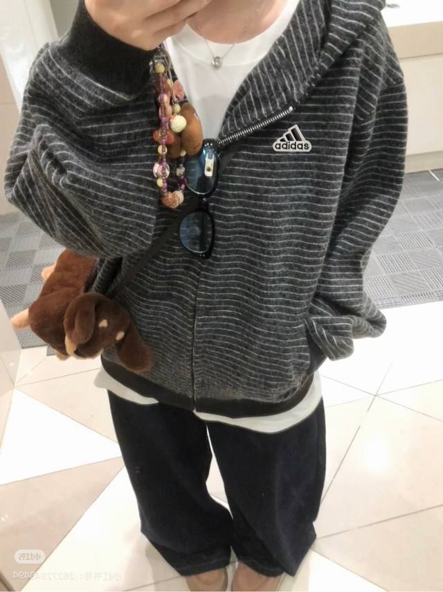 Adidas Autumn Striped Hooded Sweatshirt Jacket for Women, New Niche Design, Casual Loose American-Style Cardigan for Women