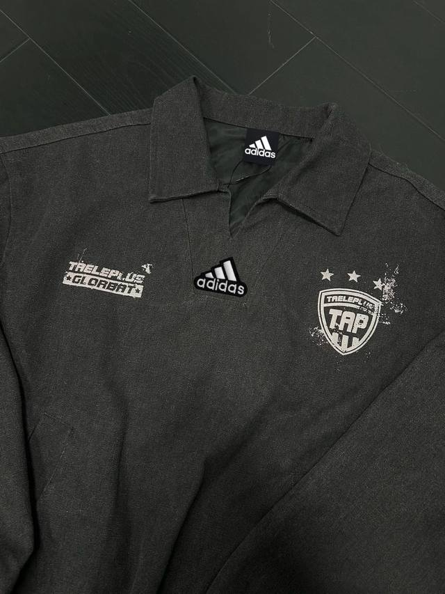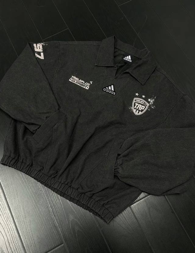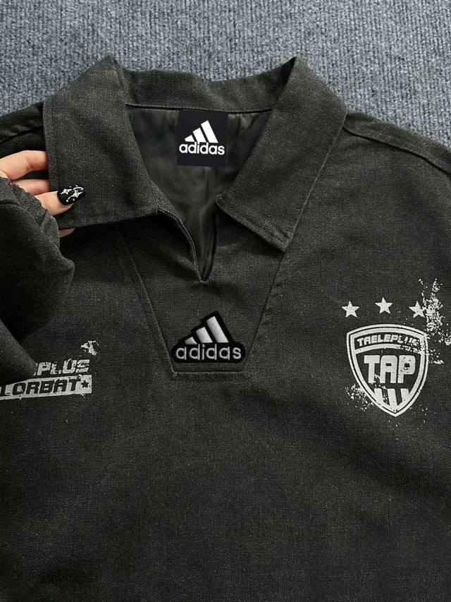 Adidas Denim Jacket, American Vintage Washed and Distressed Print Pullover Jacke