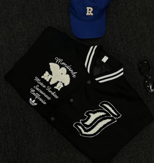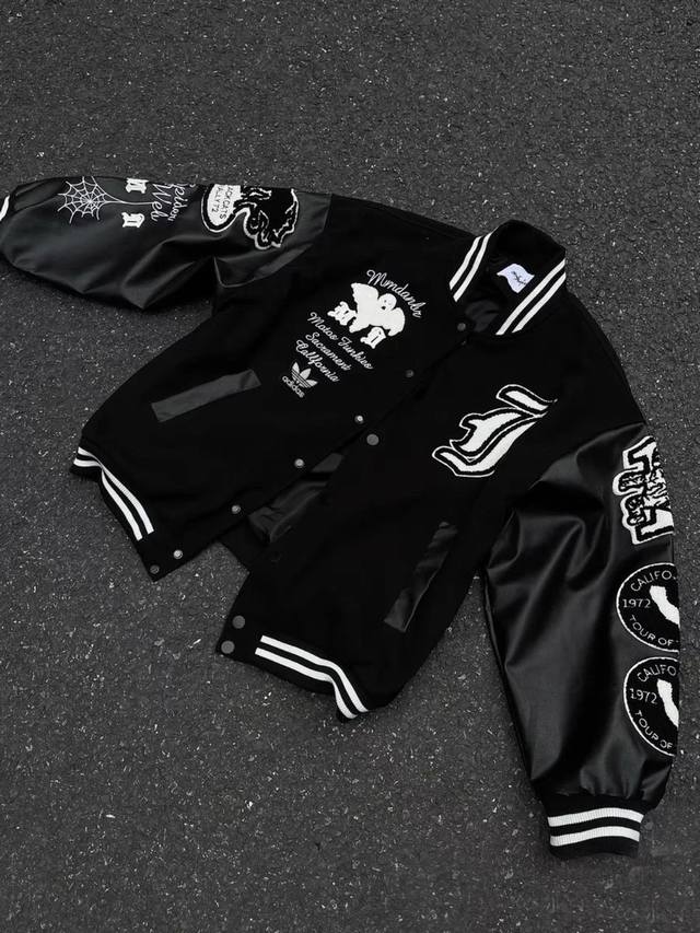 Adidas European and American retro high street fashion brand ghost embroidered baseball jacket for men and women. Spring and autumn hip-hop jacket for street style lovers.
