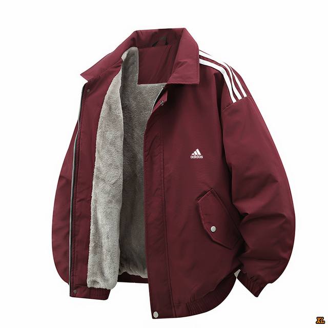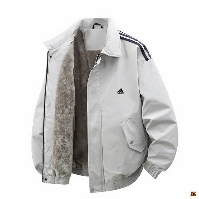 Adidas Exclusive Real Shot New Winter High-Quality Lapel Thick Fleece-Lined Jacket with Three Stripes, Loose Fit, Trendy Brand, Wear-Resistant, Windproof, Workwear Cotton-Padded Jacket, This Season's Main Feature, Ample Stock, Confident Recommendation, High-End Quality, Classic Design, Excellent Workmanship, Classic and Versatile, Excellent Wearing Effect DDD