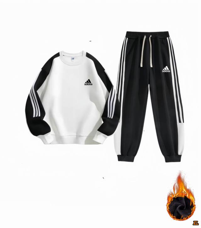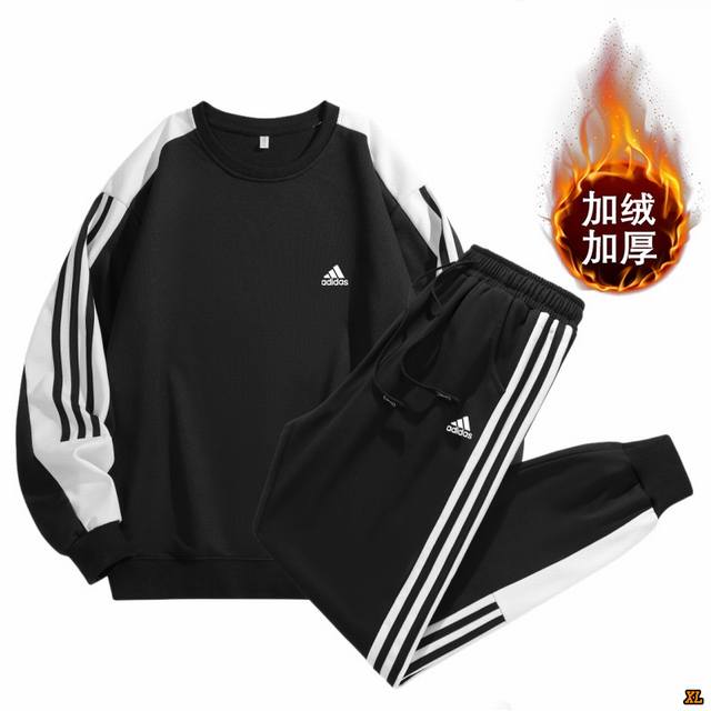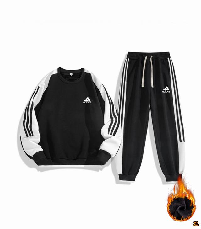 Adidas Exclusive Real Shot New Winter High-Quality Three Stripes Crew Neck Casual Fleece-Lined Sweatshirt Sports Versatile Trendy Outdoor Fleece-Lined Sports Suit, This Season's Main Product, Ample Stock, Confident Recommendation, High-End Quality, Classic Design, Excellent Workmanship, Classic and Versatile, Excellent Fit DDD
