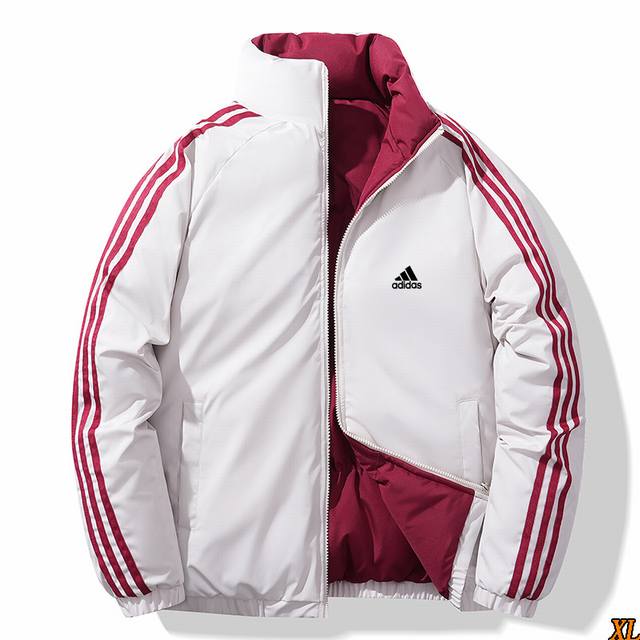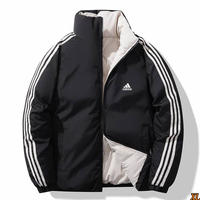Adidas Exclusive Real Shot New Winter High-Quality Three-Stripe Stand Collar Cotton-padded Jacket, Reversible High-Street Outerwear, Couple Trendy Cotton-padded Jacket, This Season's Main Feature, Ample Stock, Confident Recommendation, High-End Quality, Classic Design, Excellent Workmanship, Classic and Versatile, Excellent Wearing Effect DDD