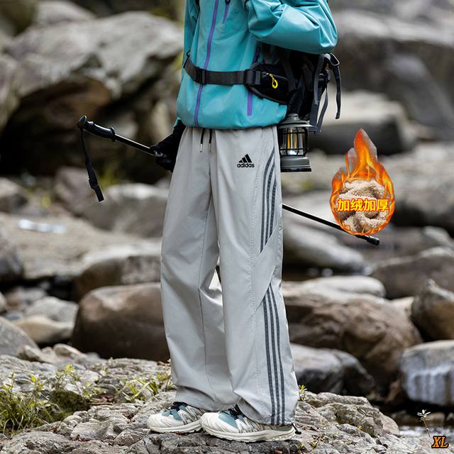 Adidas Exclusive Real Shot of New Autumn/Winter High-Quality Three-Stripe Fleece-Lined Thickened Waterproof Windproof Straight-Leg Loose Sports Casual Outdoor Workwear Pants. This season's main product, ample stock, highly recommended, high-end quality, classic design, excellent workmanship, classic and versatile, excellent fit.