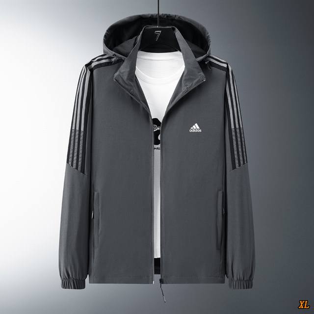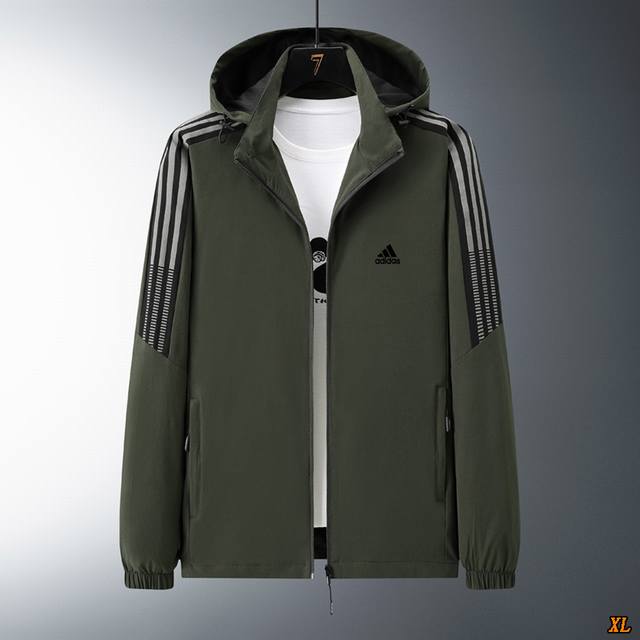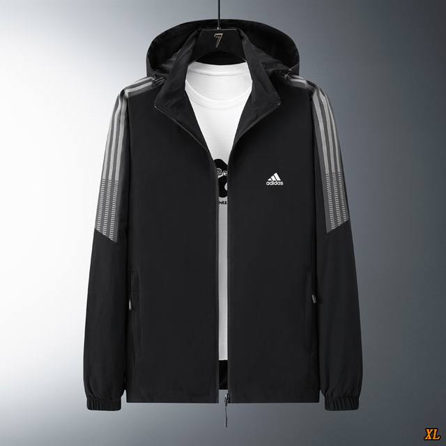 Adidas Exclusive Real Shot of New Spring/Autumn High-Quality Three-Stripe Hoodless Casual Sports Jacket, 160D Nylon Mountaineering Quick-Drying Windbreaker Jacket with Hood, This Season's Main Feature, Ample Stock, Highly Recommended, High-End Quality, Classic Design, Excellent Workmanship, Classic and Versatile, Excellent Wearing Effect